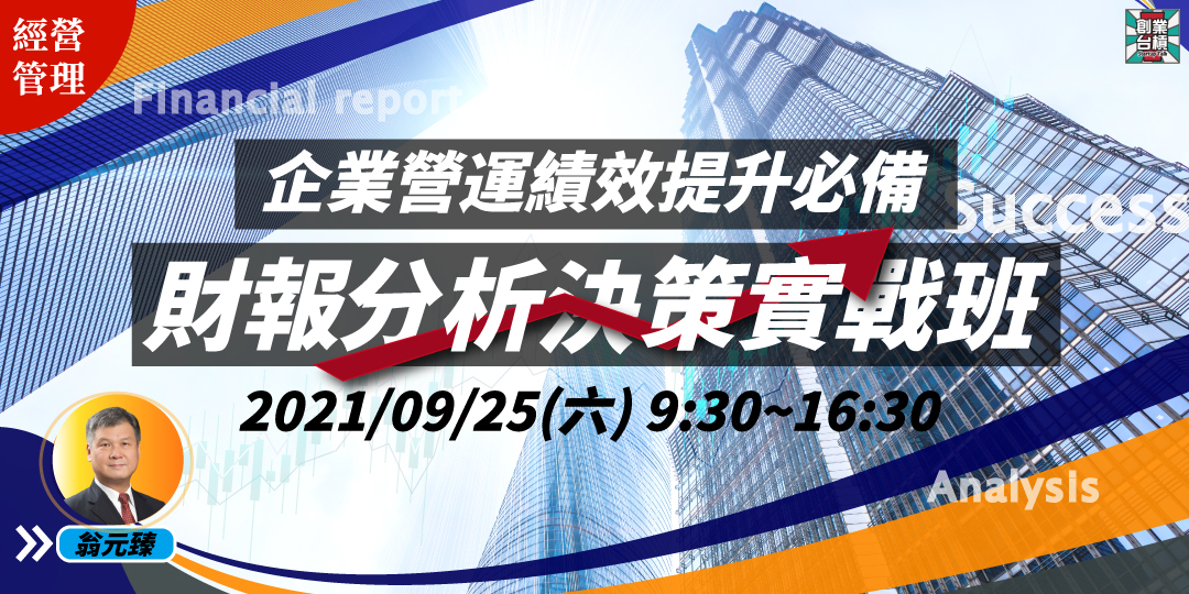 👆🏻 9/25 09:30~16:30 【經營管理】企業營運績效提升必備📈財報分析決策實戰班