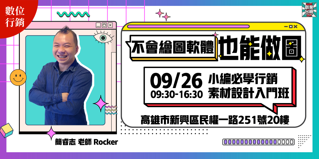 👆🏻 9/26 09:30~16:30【數位行銷】✨不會繪圖軟體也能做圖✨小編必學行銷素材設計入門班