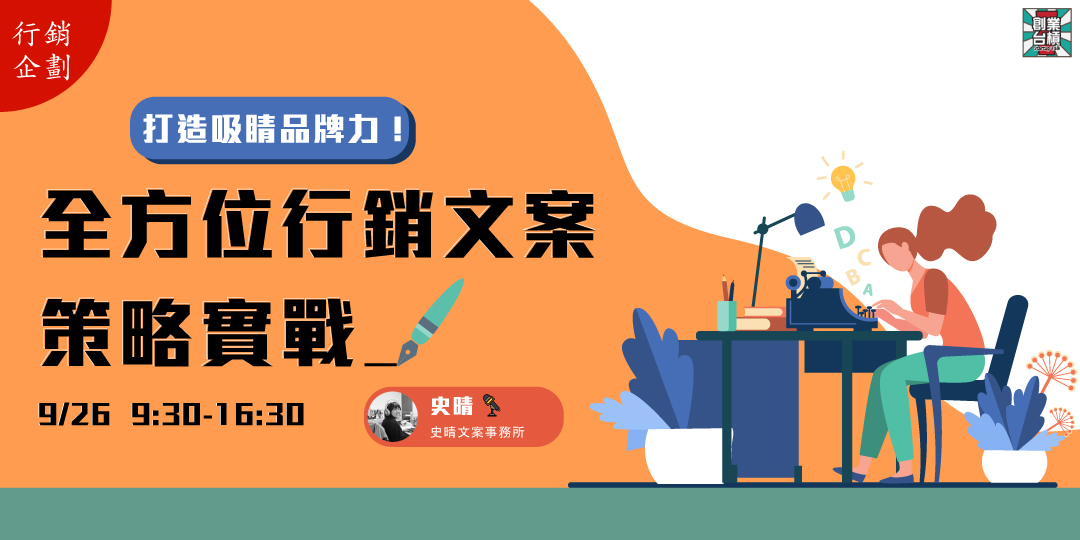 👆🏻 9/26 09:30~16:30【行銷企劃】打造吸睛品牌力|全方位行銷文案策略實戰