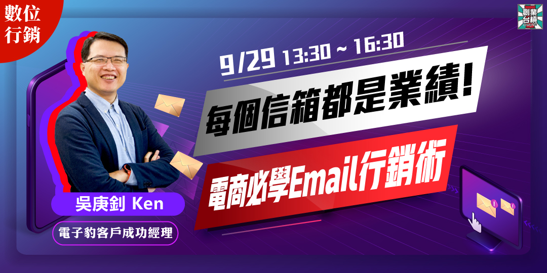 👆🏻 9/29 13:30~16:30【數位行銷】每個信箱都是業績!電商必學Email行銷術