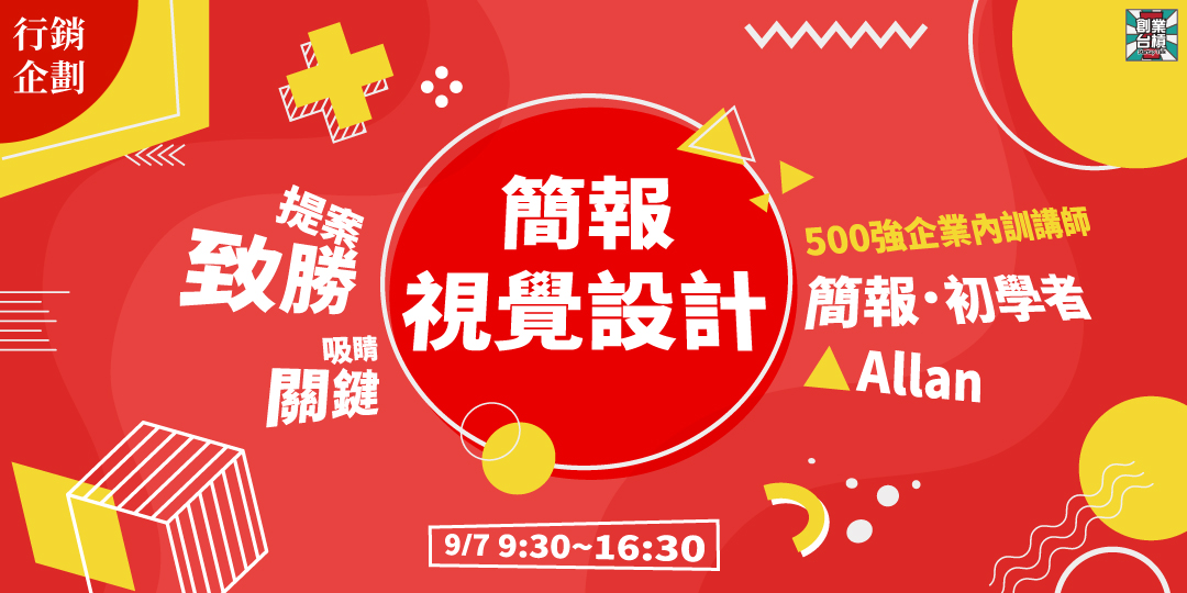 👆🏻9/7 09:30~16:30 提案吸睛致勝關鍵!簡報視覺設計必修課