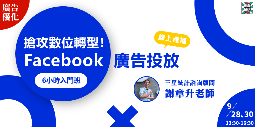 👆🏻9/28、9/30 09:30~16:30💻線上直播│搶攻數位轉型!Facebook廣告投放入門班