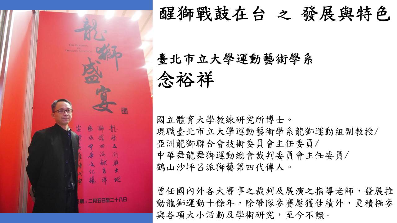 9:10~9:50 | 醒獅戰鼓在台之 發展與特色 | 論壇主持人:施德華 新北市傳統技藝保存者─岫派:張遠榮 台北市立大學:念裕祥老師 |