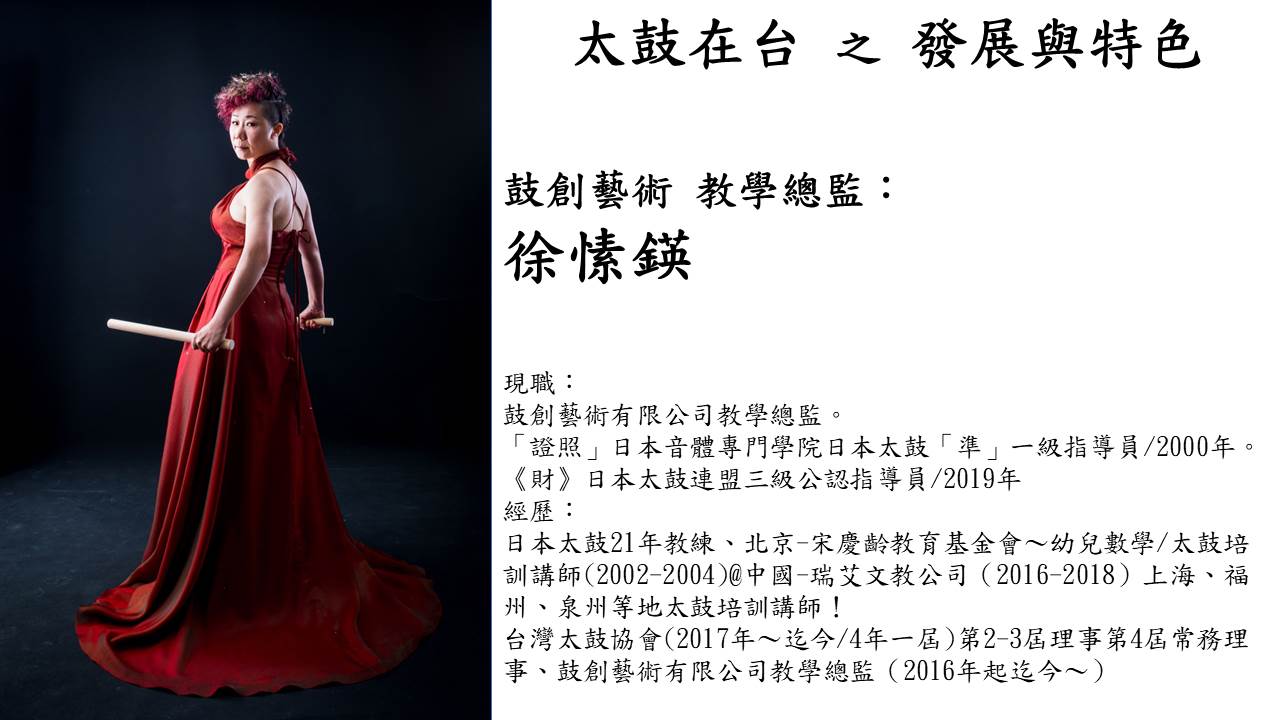 10:00~10:40 | 太鼓在台 之 發展與特色 | 論壇主持人:施德華 鼓創藝術 教學總監:徐愫鍈 臺灣鼓藝運動協會 秘書長:林韻慈 |