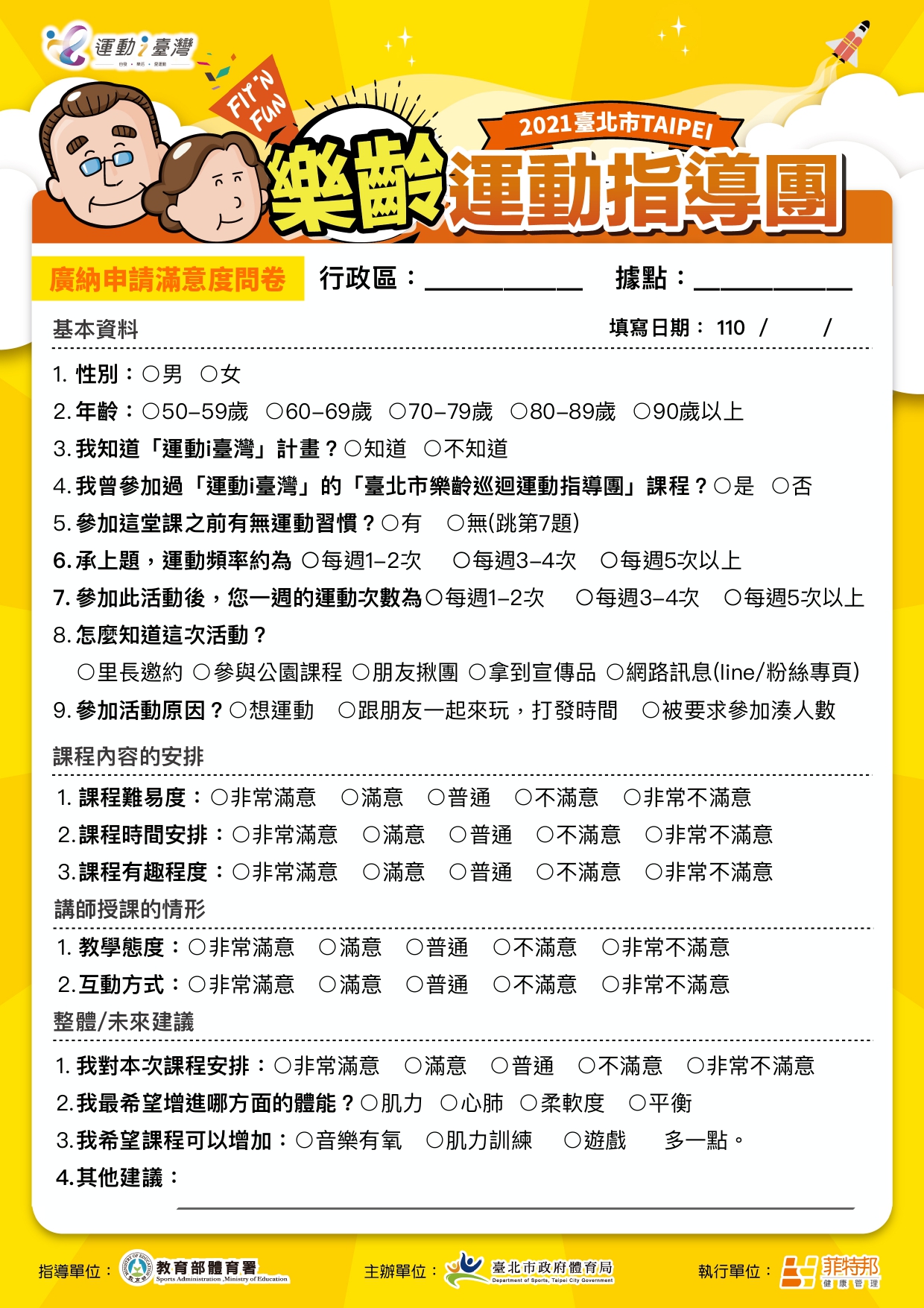 主辦單位:臺北市政府體育局 指導單位:教育部體育署