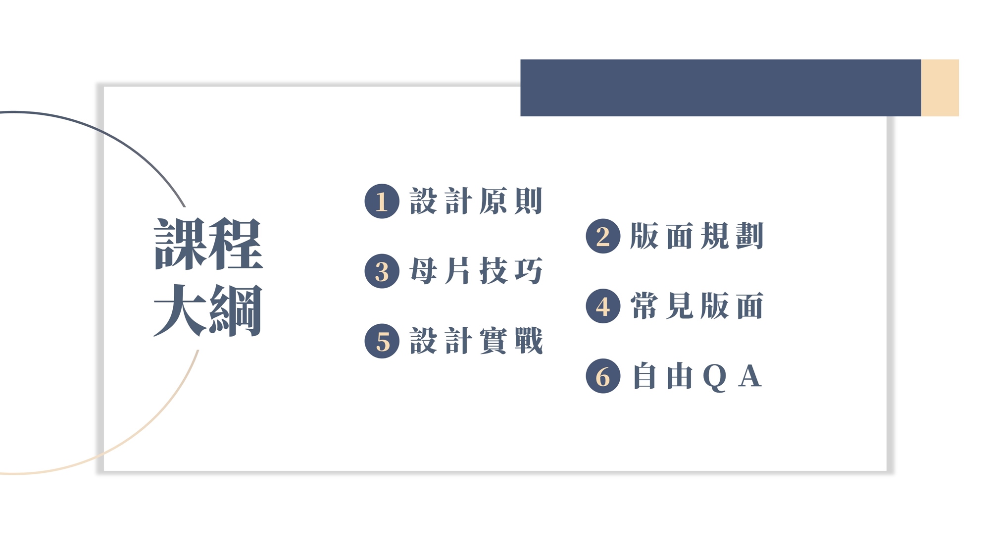 於是在這次的課程中,我們將透過版面設計原則、版面設計重心、母片核心技巧、相關輔助資源......等抽象概念去帶大家走進簡報排版的設計!