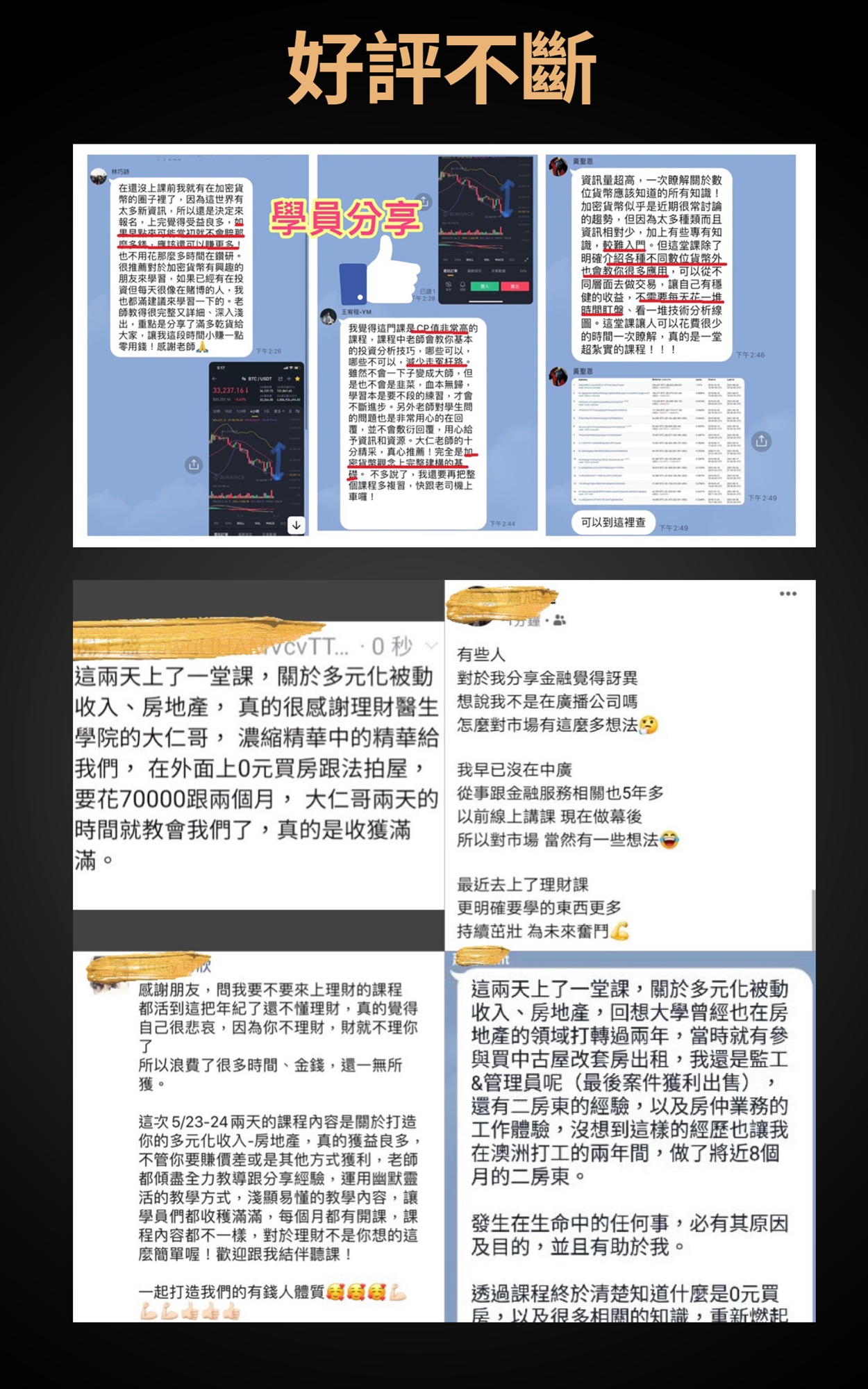目前致力於理財教育、創業教育、商業教育,協助上百位人脫離貧窮的並創造百萬收入。