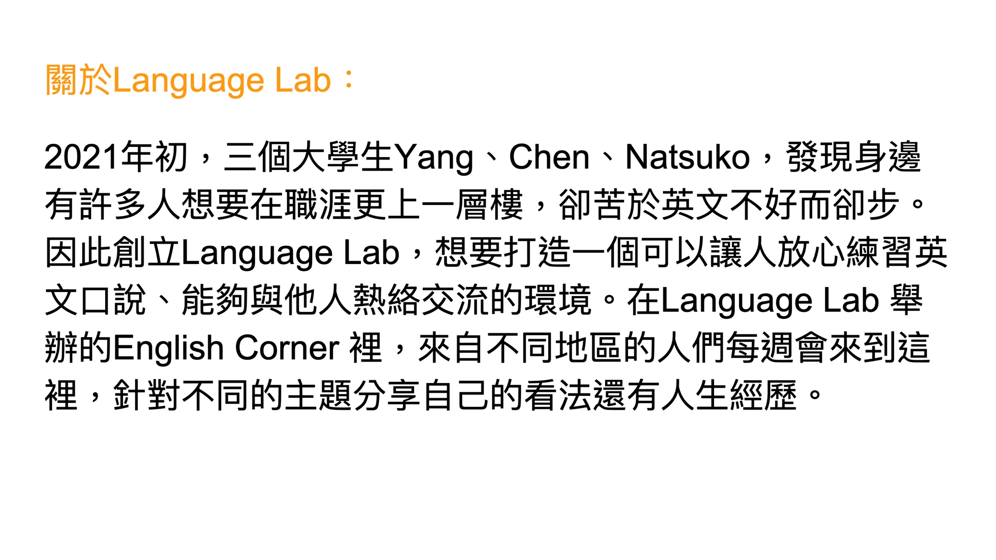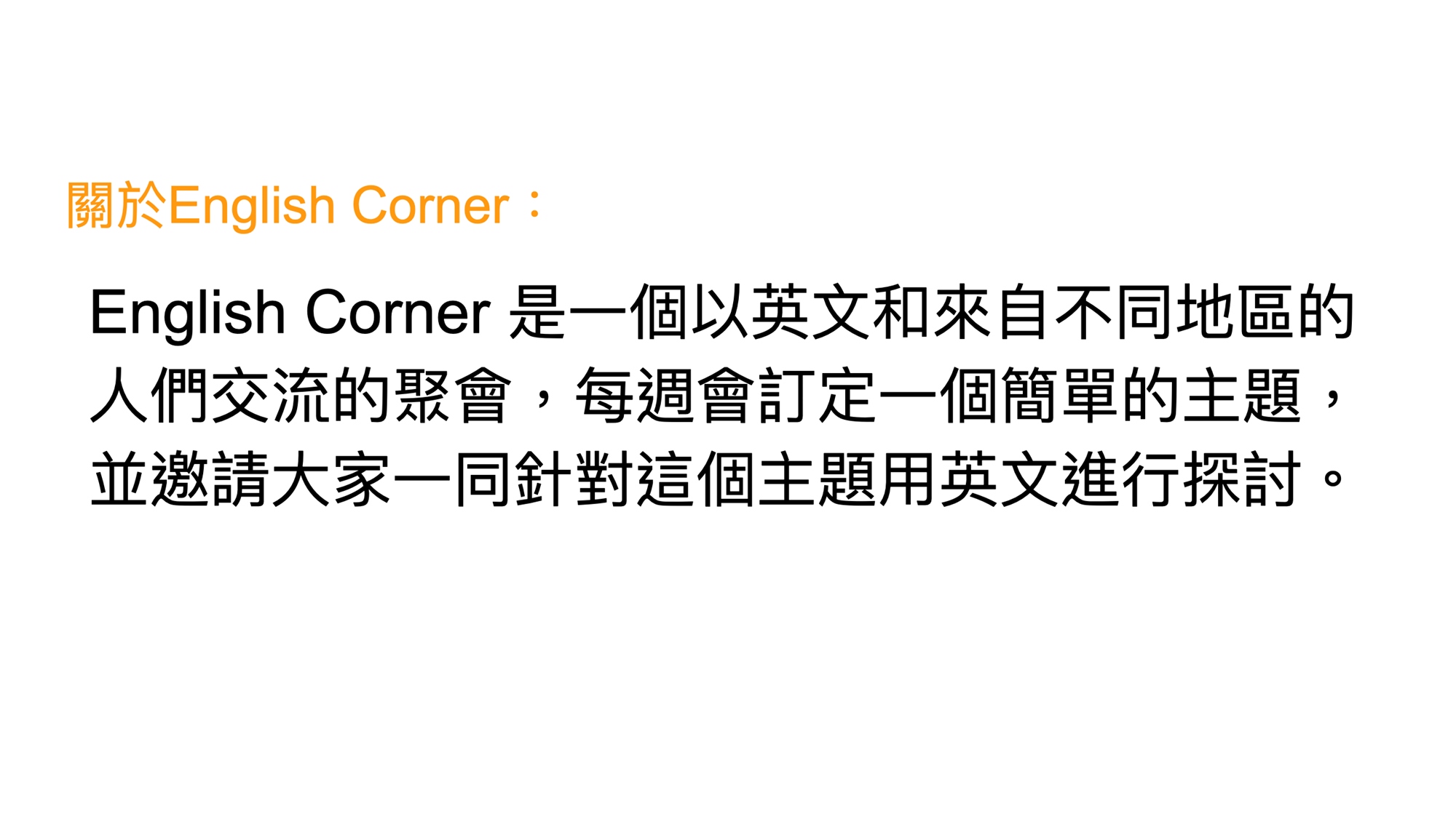 English Corner 線上英文聚會 - 和我們一起創造說英文的環境吧