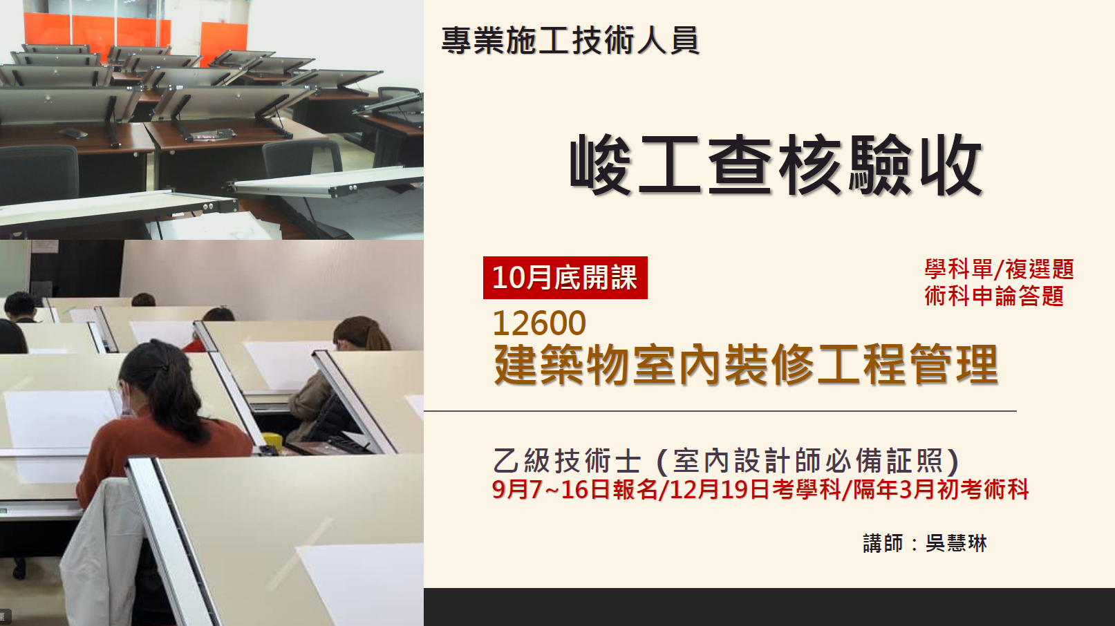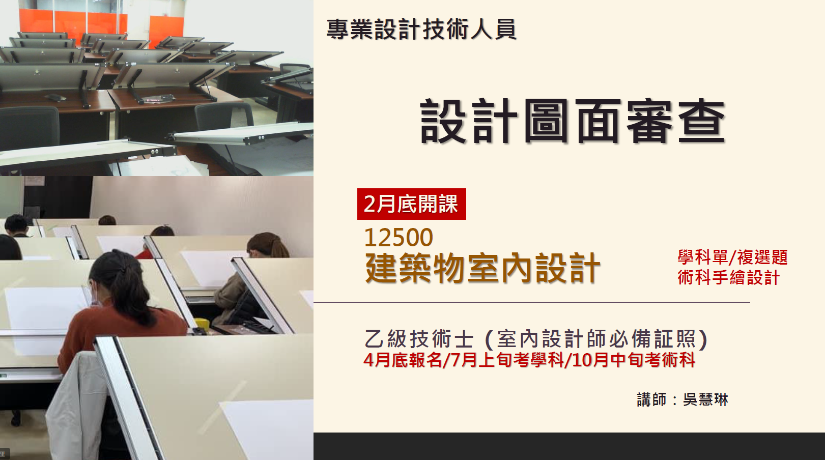 實戰經驗十分豐富的業師 吳慧林老師 為大家帶來最精彩的 室內雙乙級認證 講座~