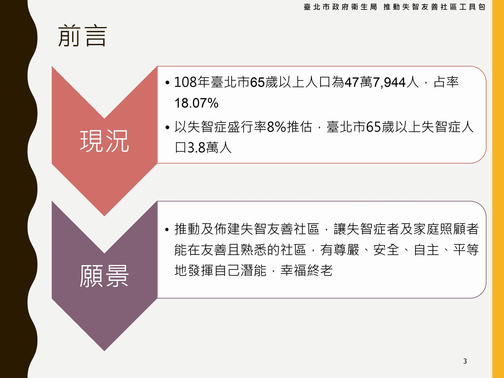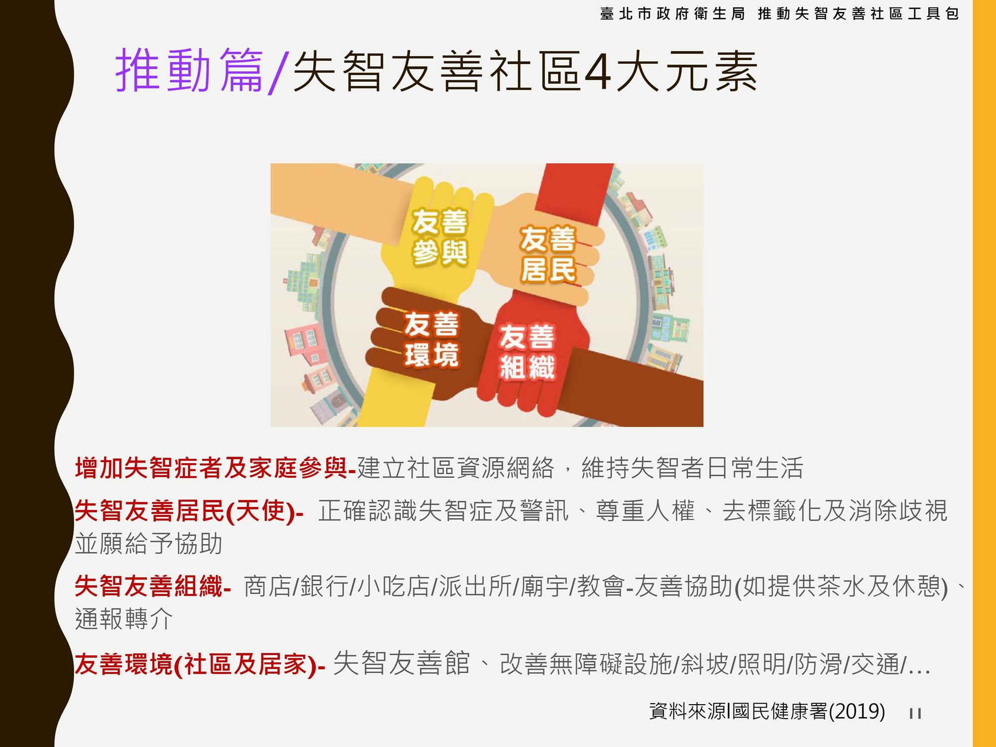 智友善的環境,以因應失智症所帶來的衝擊與挑戰。