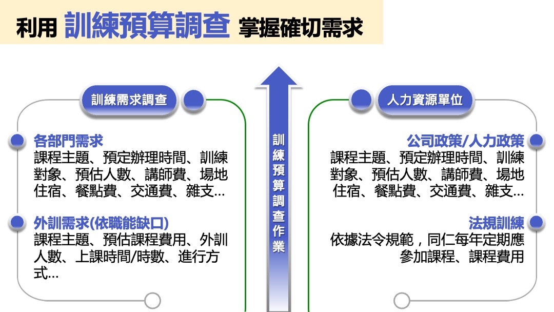 3. 利用訓練預算調查掌握確切訓練需求。 |