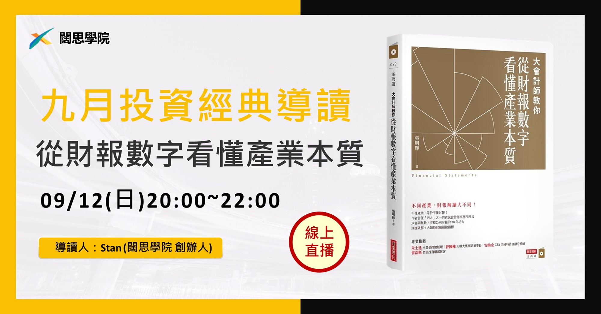 📣 2021年9月主題:大會計師教你從財報數字看懂產業本質