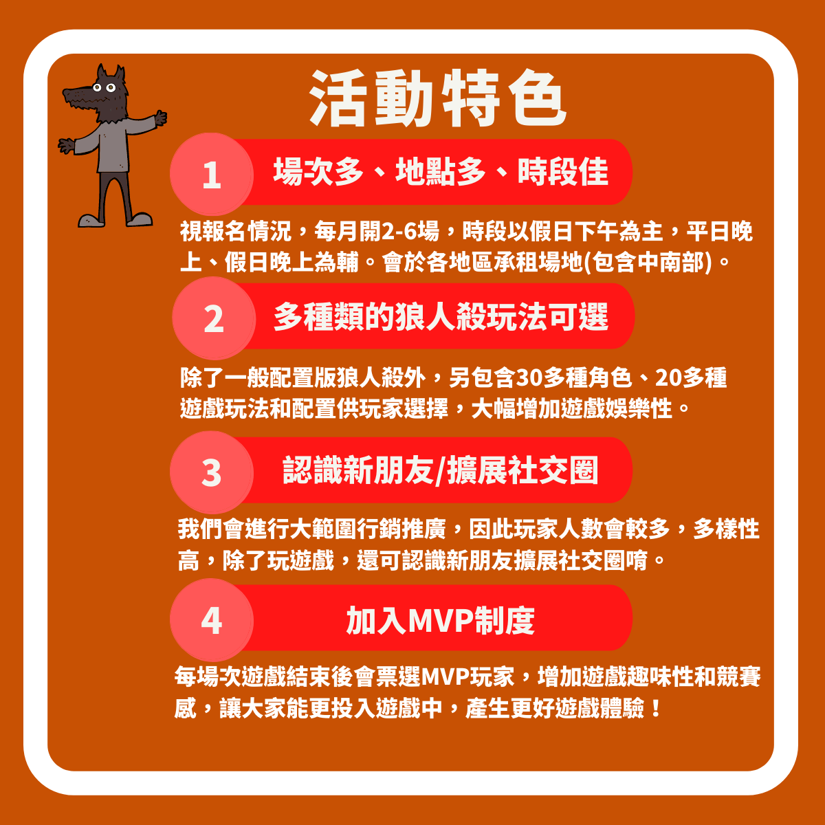場次多 / 地點多 / 時段佳 / 認識新朋友 / MVP制度