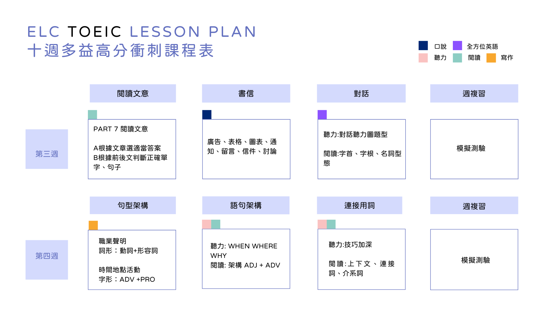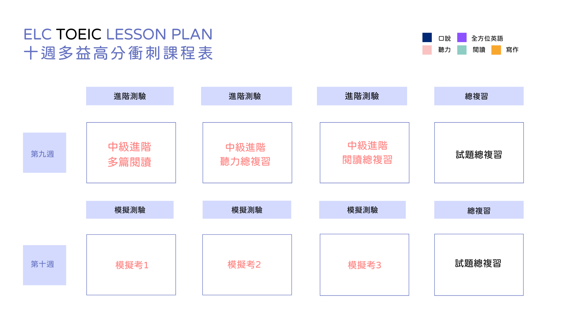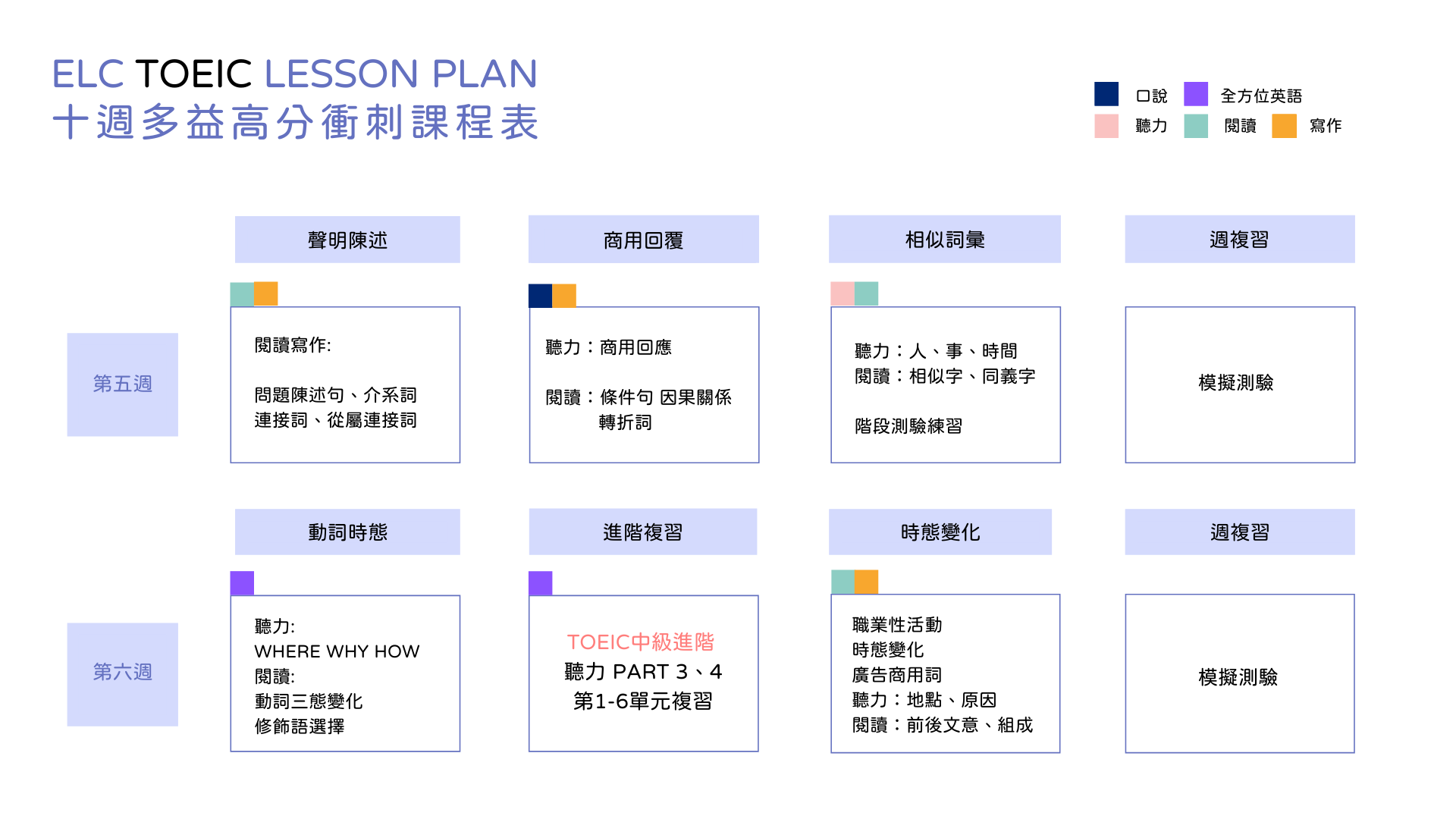 接下來另24週課程,主要著重於說、寫,以及各式考試技巧,加強弱點。不只考多益,也能讓您的英文有全面性的提升,以因應未來在不同場合上所需的英語能力。