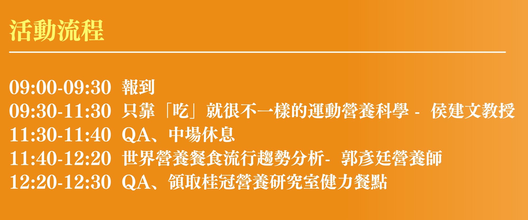 350元/人 (含桂冠營養研究室健力餐點一份)