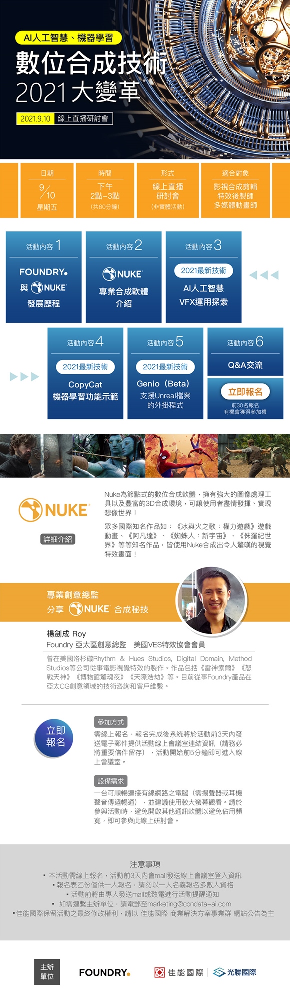 【數位合成技術 2021大變革】Foundry Nuke後製合成軟體 AI最新功能 線上研討會