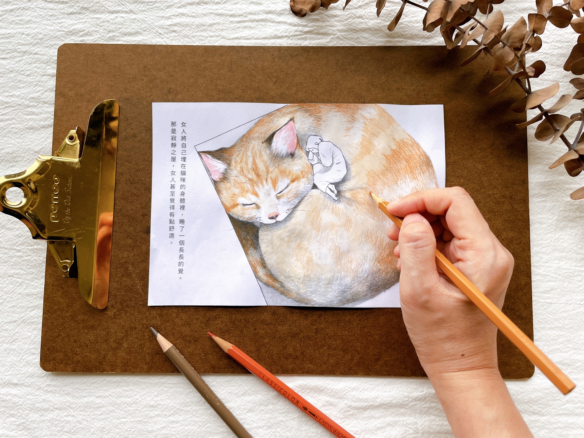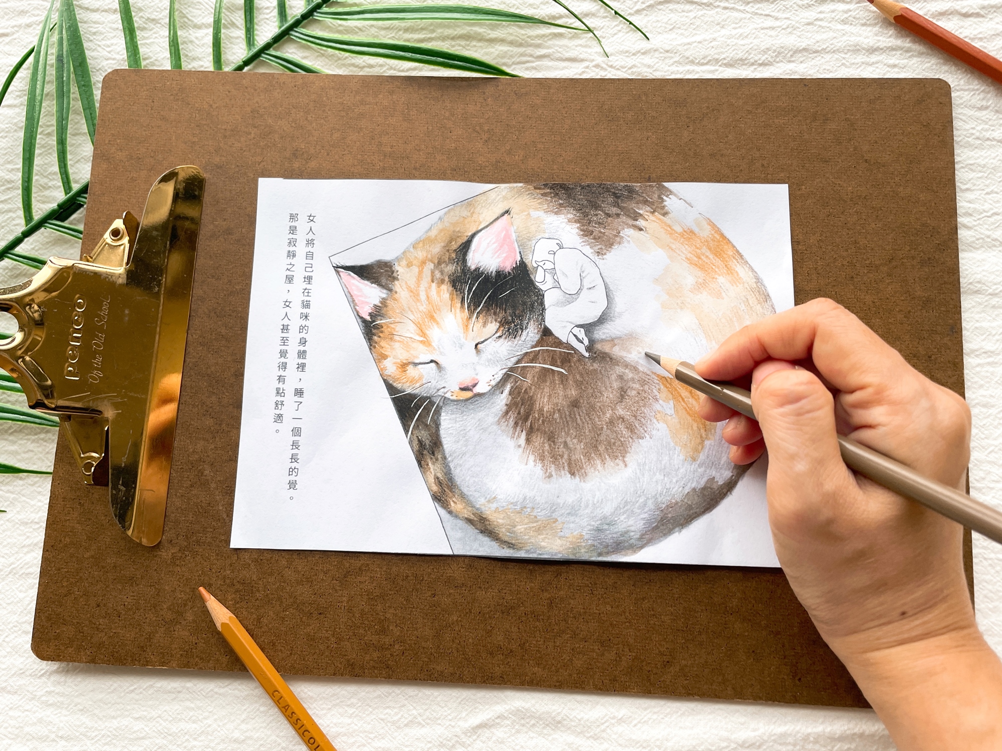 ★上色細節大公開:每一個媒材的特性都不同,看插畫家如何巧妙運用色鉛筆、簡單的水彩,做出疊色、表現漸層等等效果,你也能自己試試看!