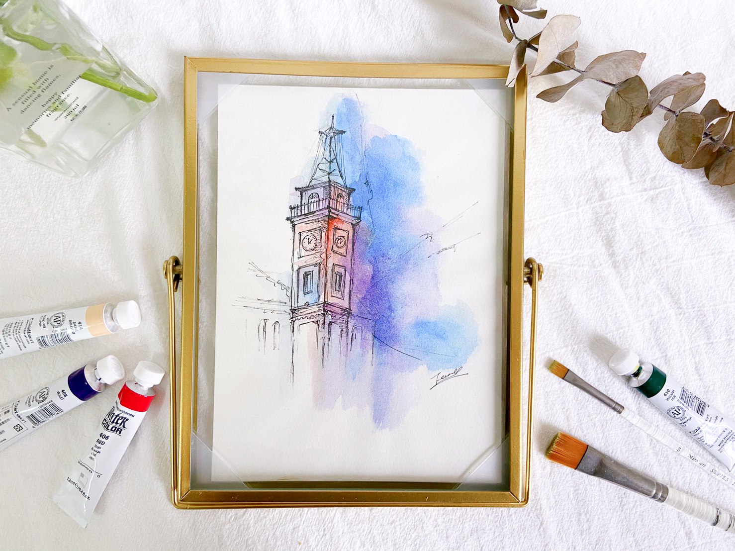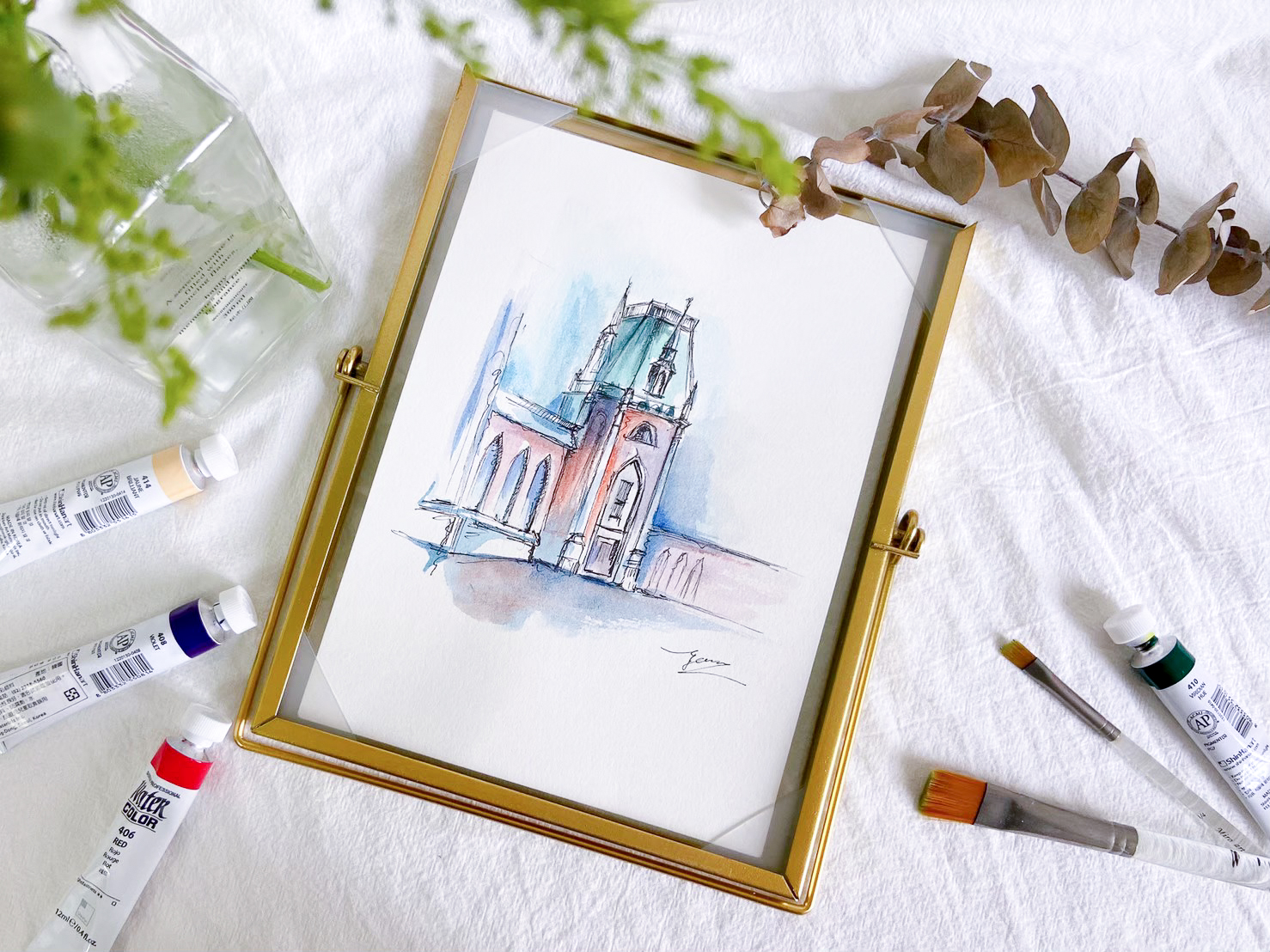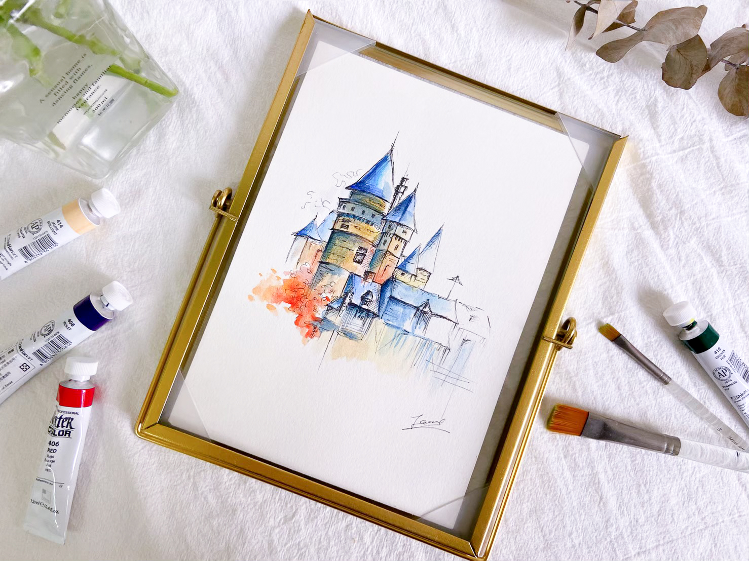 既然無法實際出國遊賞,那就把心中惦念的異國景色描繪出來