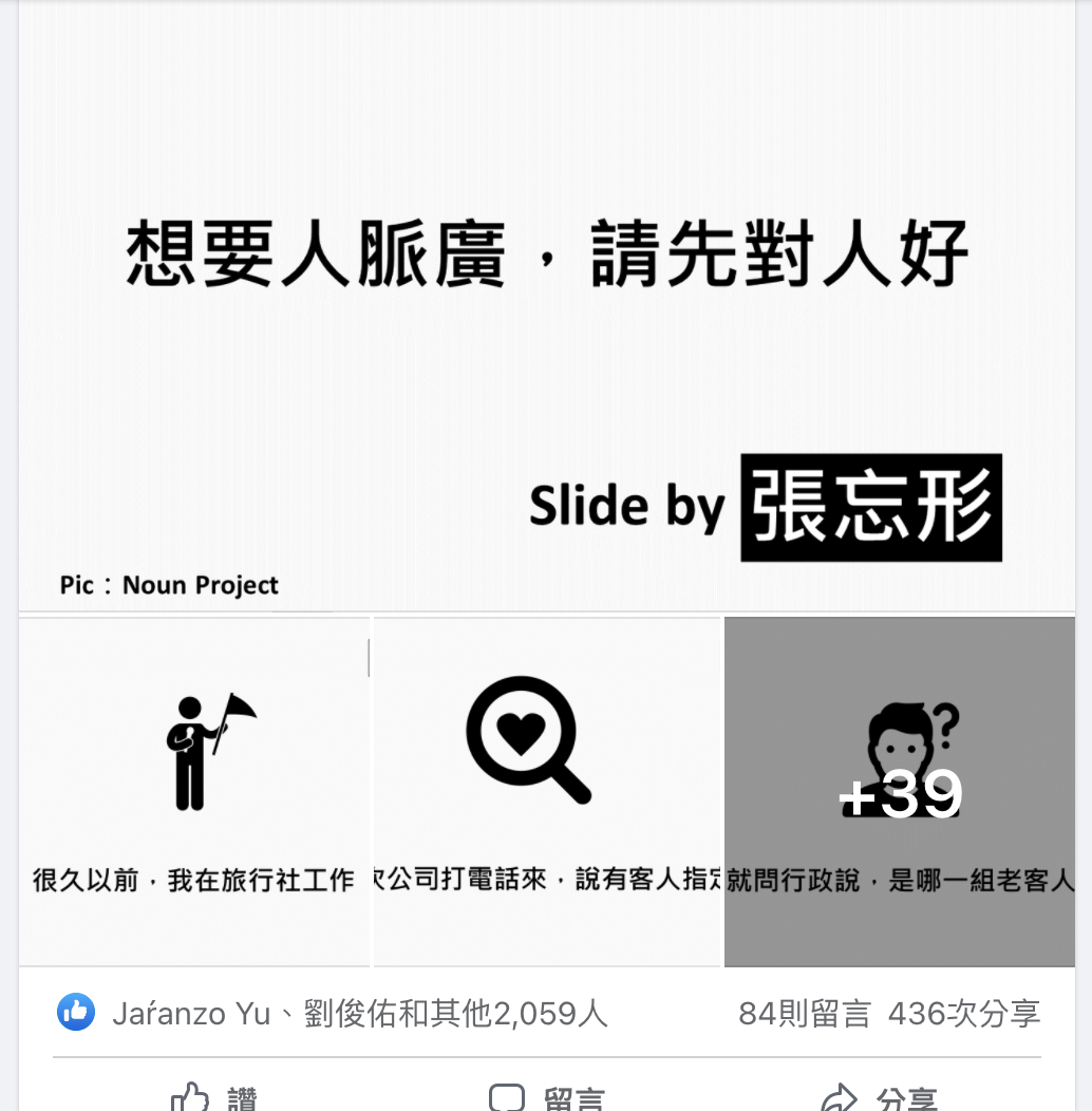 這些讓人一看完就忍不住想分享的貼文,全都出自於張忘形老師之手!不只能用引人入勝的文字,吸引大家關注,還能製作出簡單易懂的「忘形流簡報」,讓大家狂分享!狂點頭!