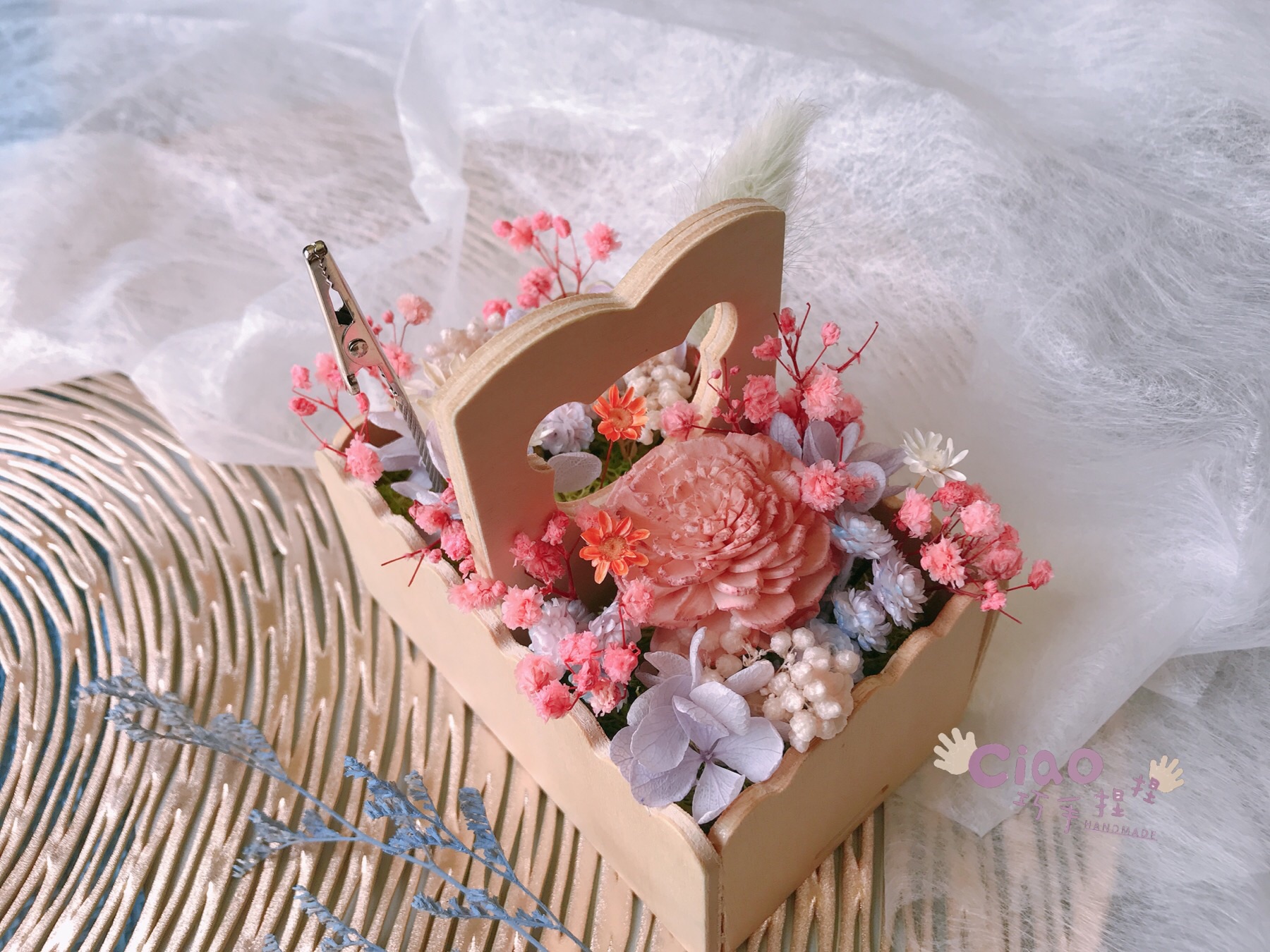 運用永生花和乾燥花製作童話般的夢幻花籃,