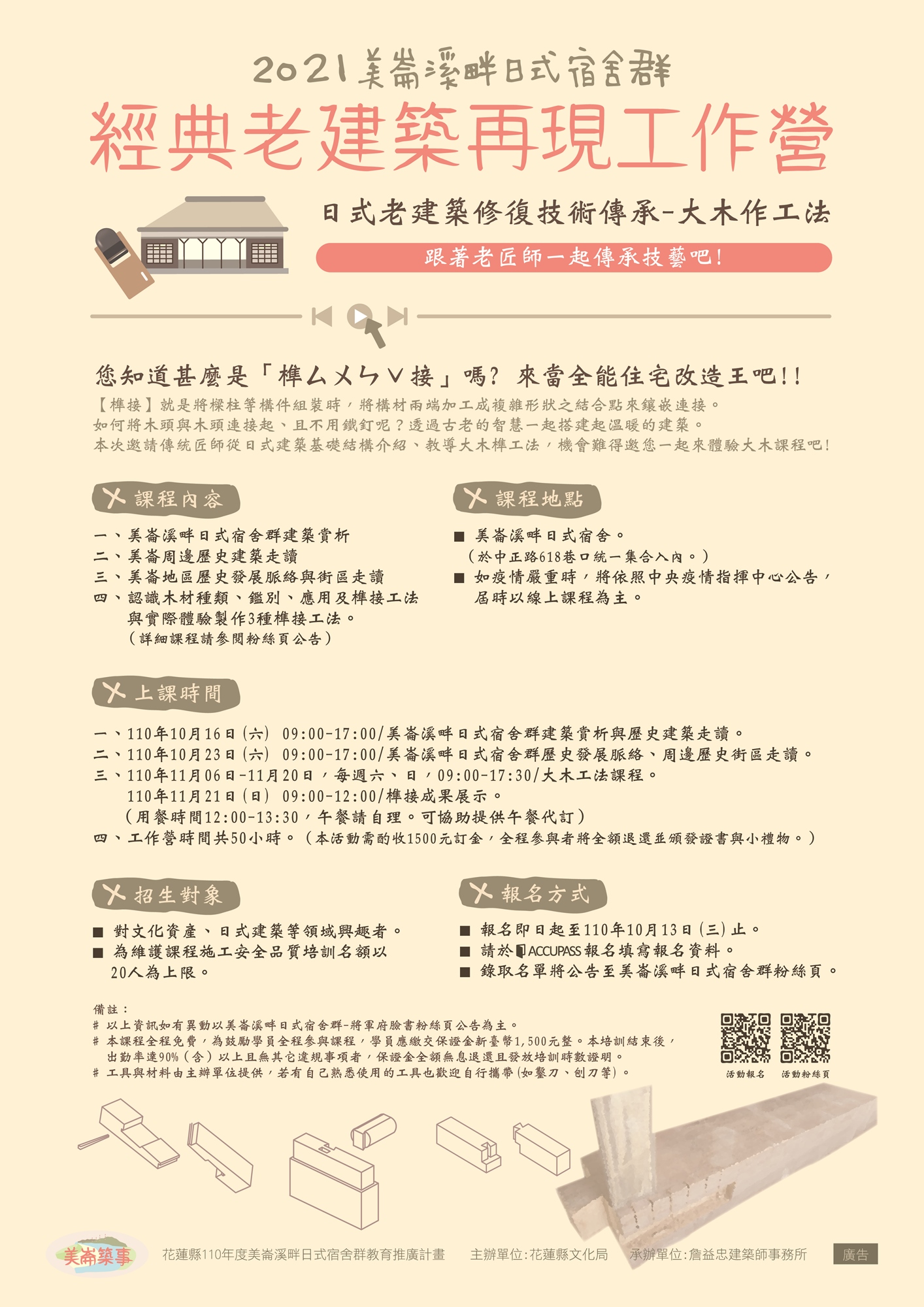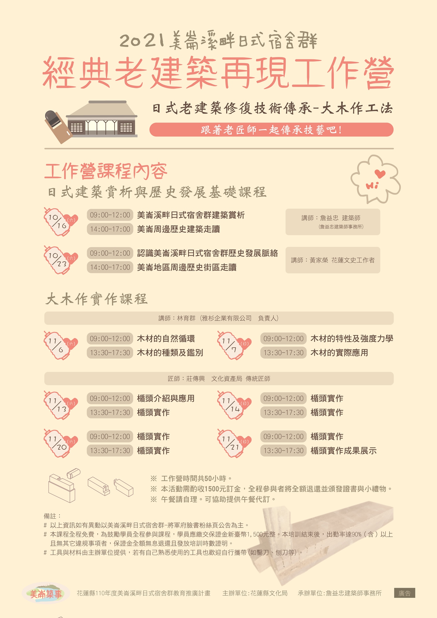 快快手刀報名!! 一起向匠師學習大木作的工藝吧!