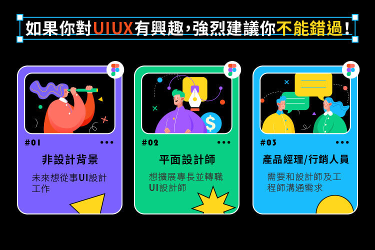 Figma的線上協作功能,對於快速迭代的工作模式非常適合,無論你擔任什麼角色,都能更順暢且明確地完成溝通工作,近年更躍升為主流設計軟體,是設計人不可或缺的技能,歡迎所有對於UIUX設計有興趣的人一起加入我們!