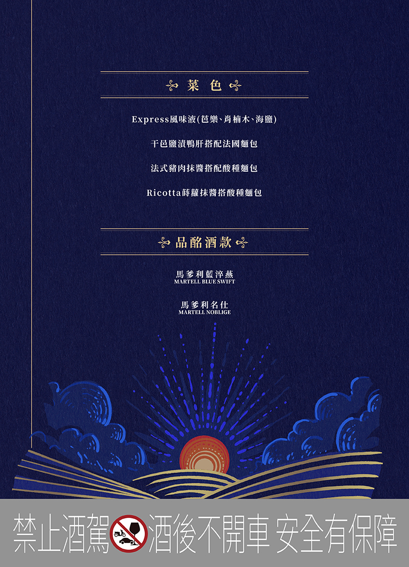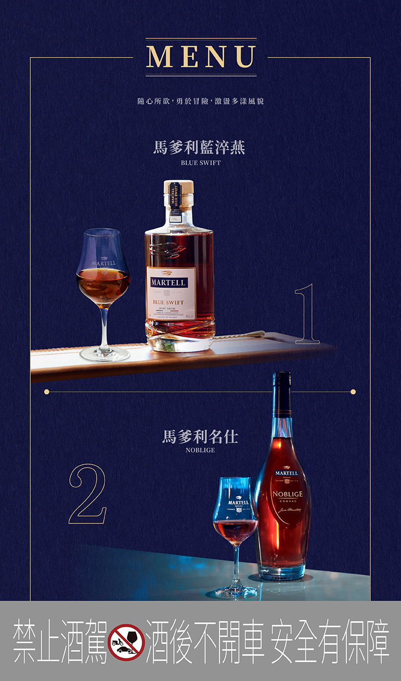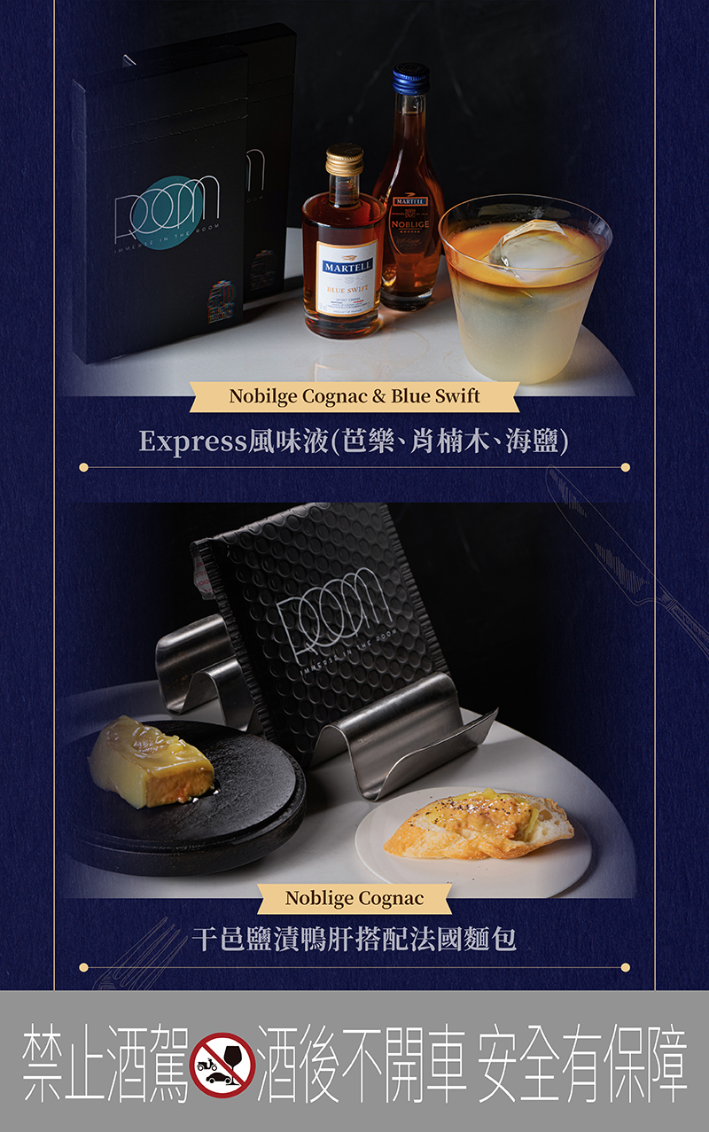 ※ 馬爹利藍淬燕白蘭地(50ml)、馬爹利名仕干邑白蘭地(50ml) 為加購部分,收件地址為雙北地區之消費者,應於套餐送至府上時,由報名者本人(應為符合法定年齡者),現場向專人另行購買。加購費用為新台幣50元並僅限加購一組。收件地址非雙北地區之消費者,因委託貨運業者配送,法規及配送距離限制恕無法提供酒款加購服務,敬請見諒。
