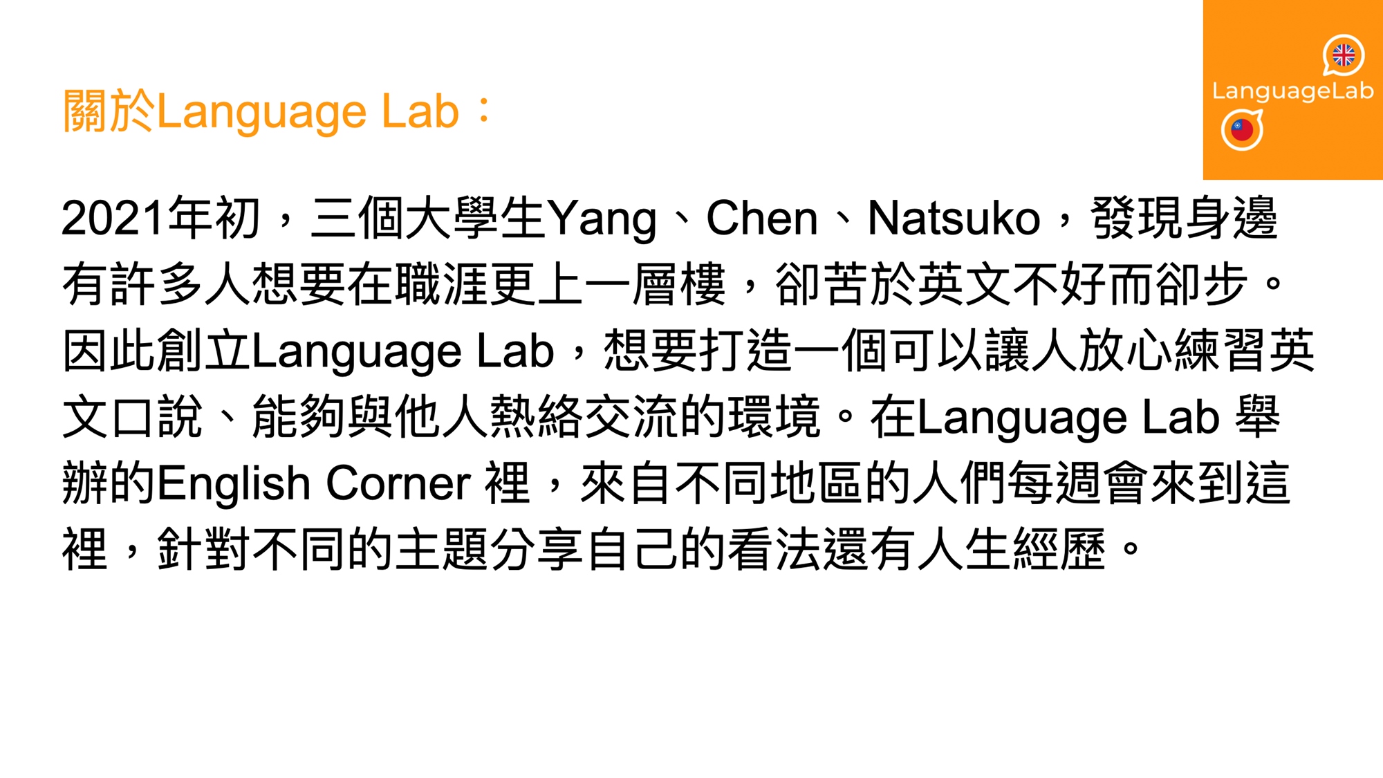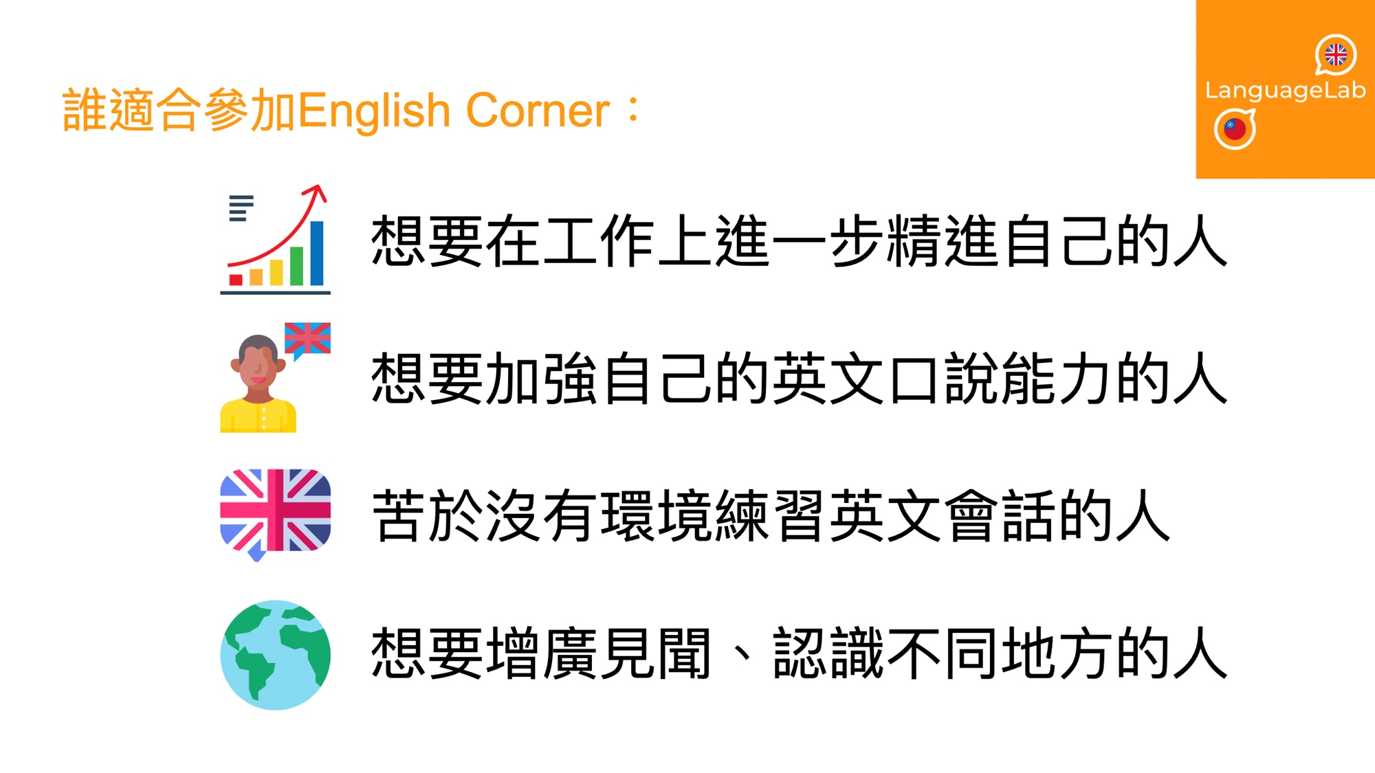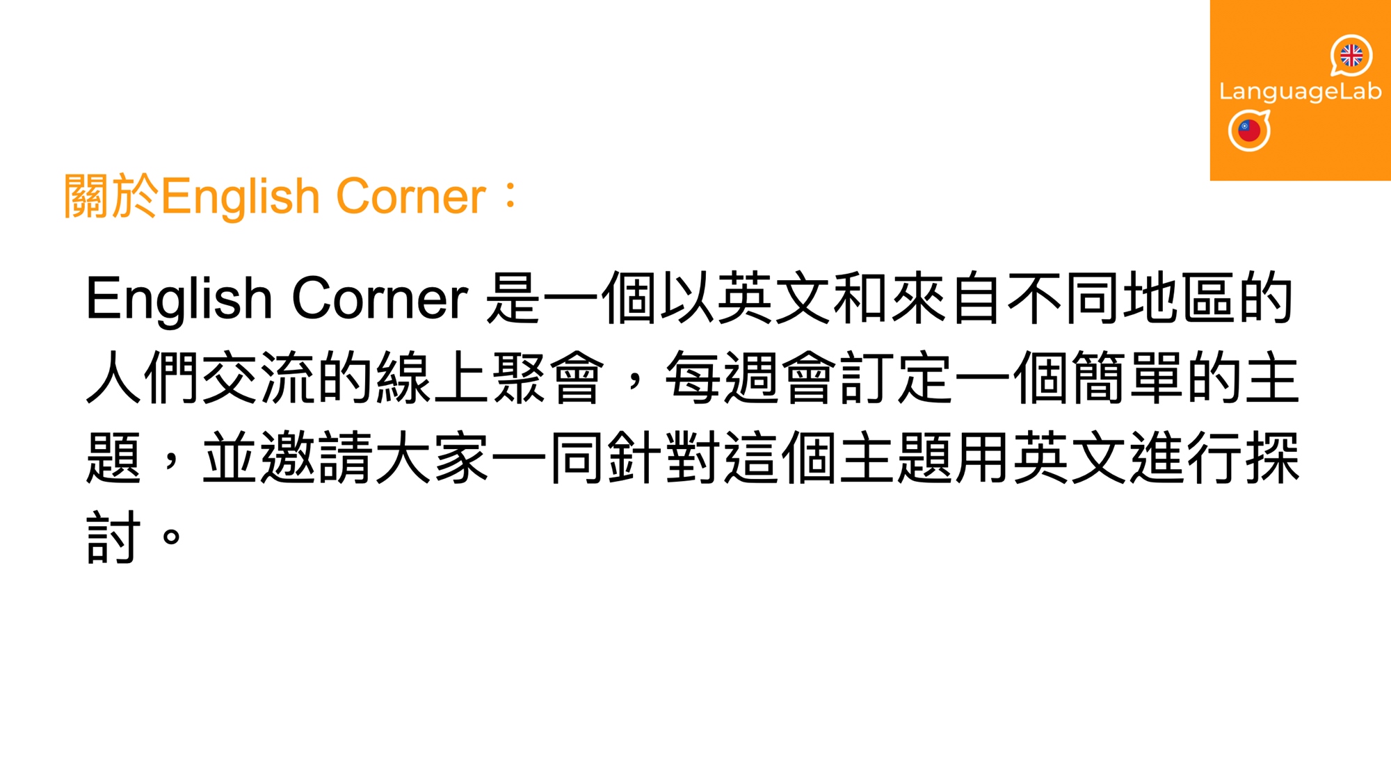 English Corner 線上英文聚會 - 和我們一起創造說英文的環境吧!