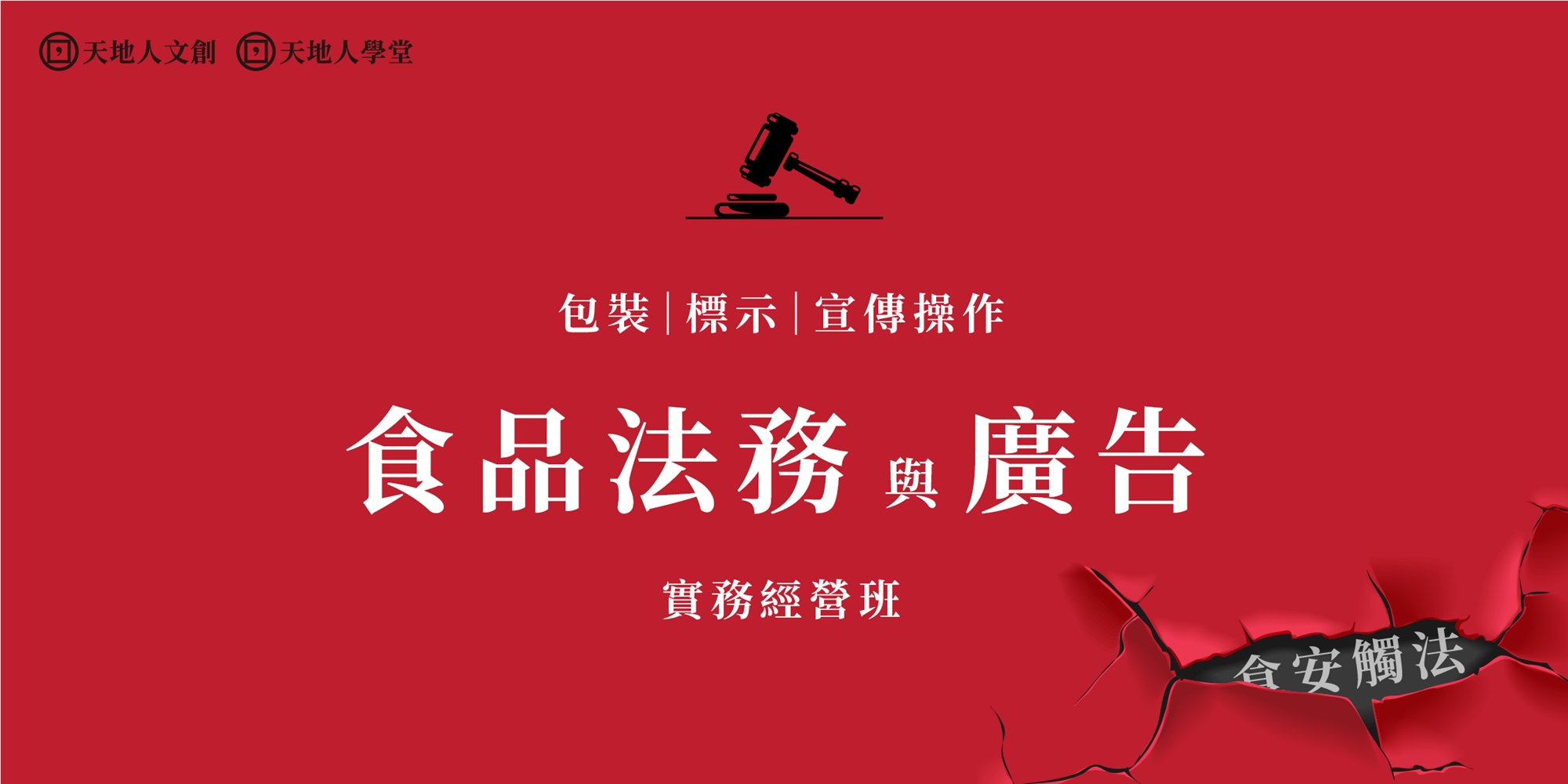 一項產品在販售前一定會經過研發、生產、製造、宣傳的過程,每個環節都有應注意的法律,與其慢慢查詢,或在違法後再調整標籤及廣告內容,不如在一開始就瞭解完整的知識,在實務上遇到的疑難雜症直接透過課程詢問業師。有鑑於此,天地人學堂特地規劃出此課程,「食安觸法?食品包裝、標示及宣傳操作的食品法務與廣告實務經營班」,邀請現任法律事務所主持律師,業師具備多年實務經驗,不僅擁有律師專技高考證照,還曾擔任臺中律師公會副秘書長。這門課將以多年紮實的實務經歷由淺入深的帶領學員瞭解食品安全相關法律,全面剖析食品販售前應瞭解的四大核心技能:(1)食品業者自主管理相關規定;(2)食品標示規則及相關法律責任;(3)食品及其他產品廣告宣傳應注意之事項;(4)國內外實際案例解析,透過這門課程,協助你瞭解食品從研發到宣傳的過程中應該注意哪些法律細節。