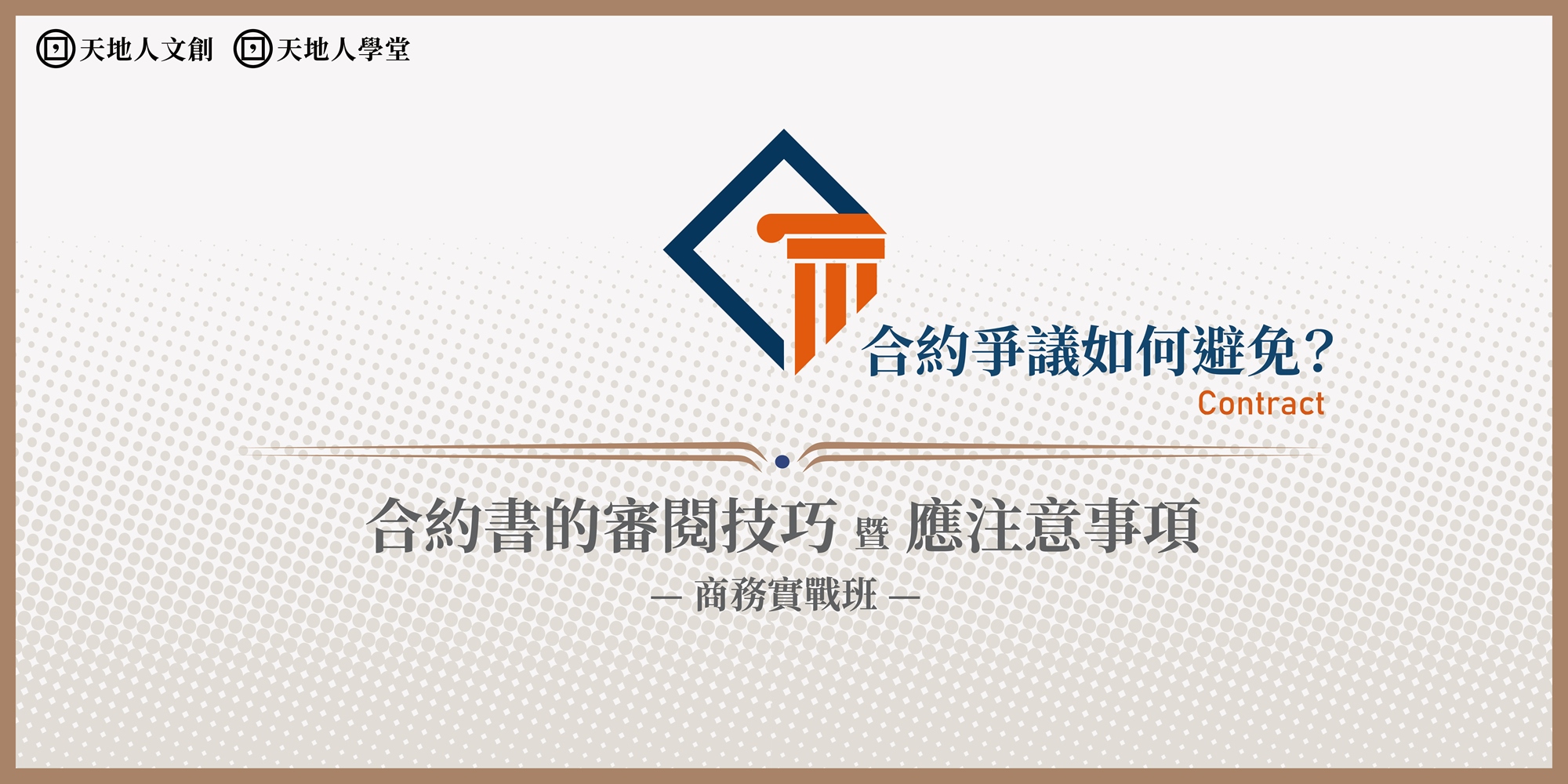 所謂的「退場機制」,就是指雙方合約關係在符合一定的條件下,可以提出解除或終止的需求。任何一張合約都要擬定退場機制,否則會變成是一項永不結束的履行關係。有鑑於此,天地人文創旗下天地人學堂特地規劃出「合約爭議如何避免?合約書的審閱技巧暨應注意事項|商務實戰班」,邀請到雋理法律事務所主持律師親授課程,以多年扎實的實務經驗由淺入深帶領學員瞭解合約的擬定與履行要件,全面探討合約簽訂與履行義務的四大核心技能:(1)業務部門與客戶簽約之應注意事項;(2)如何確保合約被履行與遵守?(3)如何結束合約關係?剖析「退場機制」;(4)業界經驗分享與實務演練引導,透過這門課程,協助你瞭解合約爭議與合約審閱、履行的實戰技巧與Know-how。