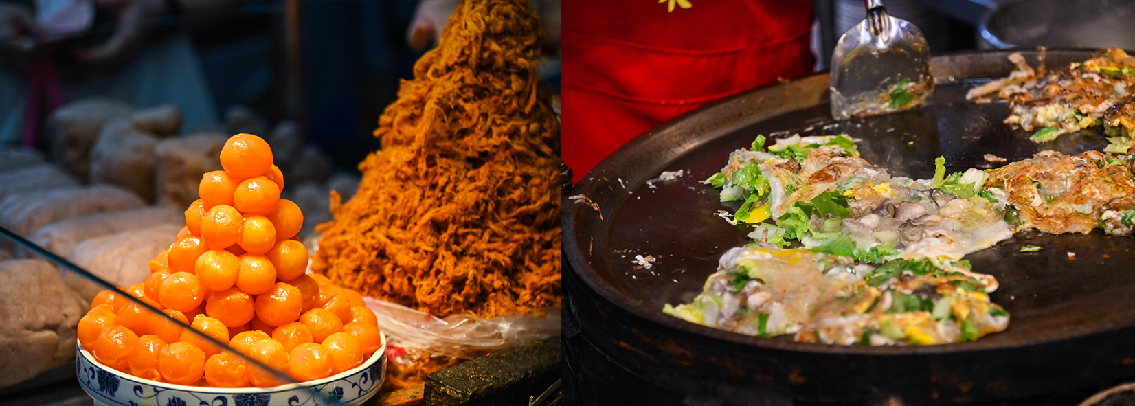 走訪寧夏夜市必比登美食,從圓環邊蚵仔煎、劉芋仔香酥芋丸、方家雞肉飯到豬肝榮仔,給您大大的滿足。