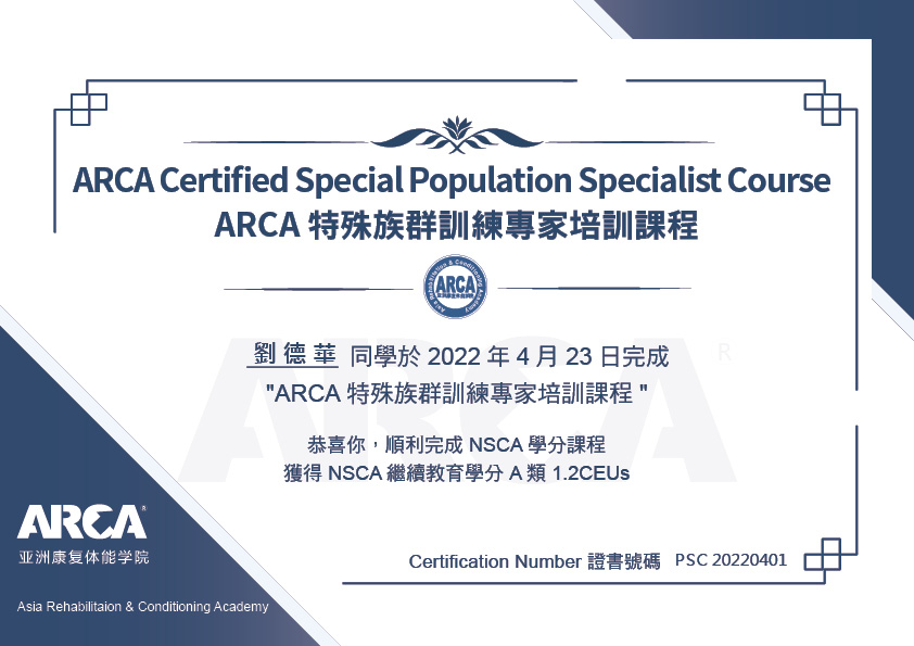 ※由於各國國情不同,以上各項資格若有爭議時,以NSCA 網站之NSCA CERTIFICATION公佈的要項為準