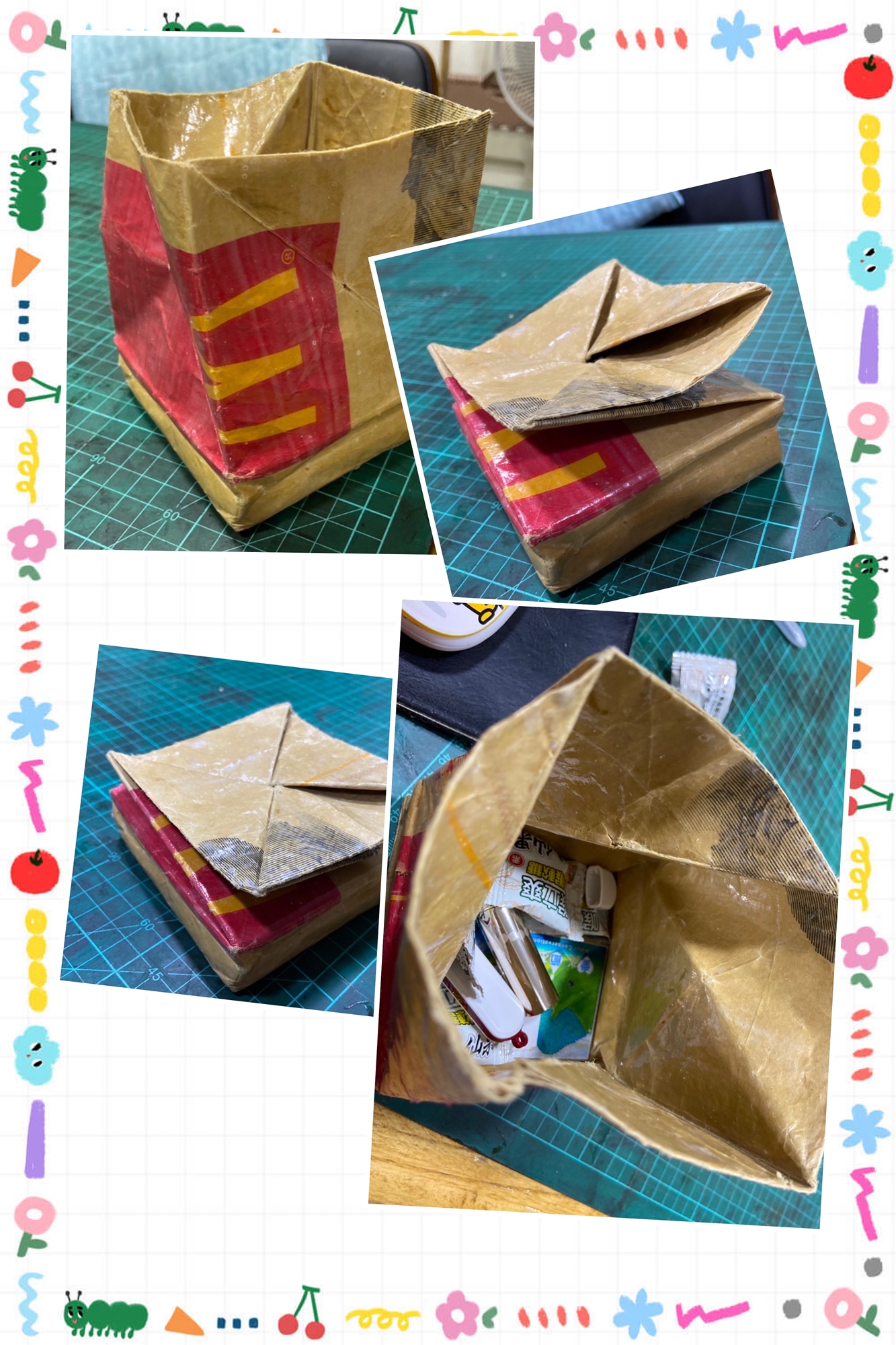 ◎自備材料:1.紙袋(類似麥X勞、咖啡外送紙袋,大小不拘的紙袋)2.厚紙板(類似買新襯衫附在裡面的厚紙版、或餅乾外盒)