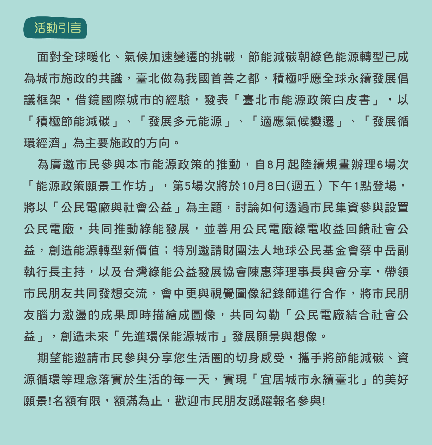 110年臺北市能源政策願景工作坊[場次5 - 公民電廠與社會公益]