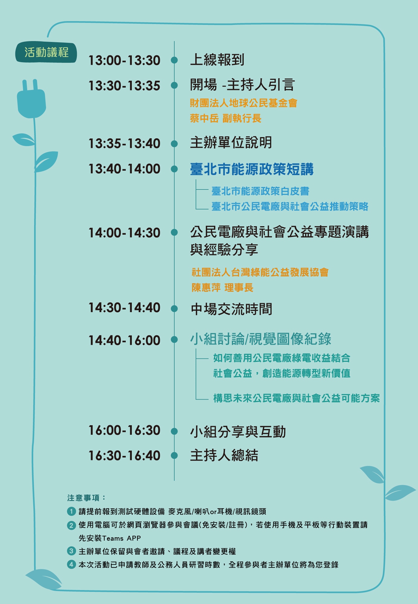 本活動全程使用Teams會議軟體 ,免費參加,主辦單位已申請教師及公務人員研習時數(會後將協助全程參與者登錄)
