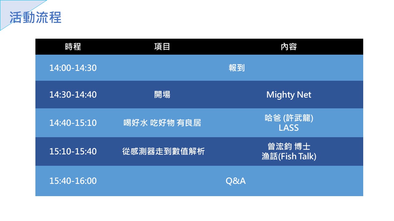 隨著物聯網概念的出現和感測技術的進步,智慧農漁業也隨之興起,水感測的概念也隨之發展。而另外一方面,在養殖的過程中,水質的好壞和穩定度與養殖的結果有很大的關聯,藉由物聯網的水感測技術來進行水質監測,也成為很多人的研究重點,但是如何解讀感測數值的研究,相對來說就少了許多,因此,漁話(Fish Talk)團隊嘗試解讀從魚塭現場取得感測數值,並從中探討應對數值的解決方向。