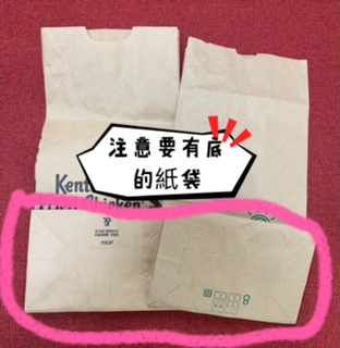 1.紙袋(類似麥X勞、咖啡外送紙袋,大小不拘有底的薄紙袋)