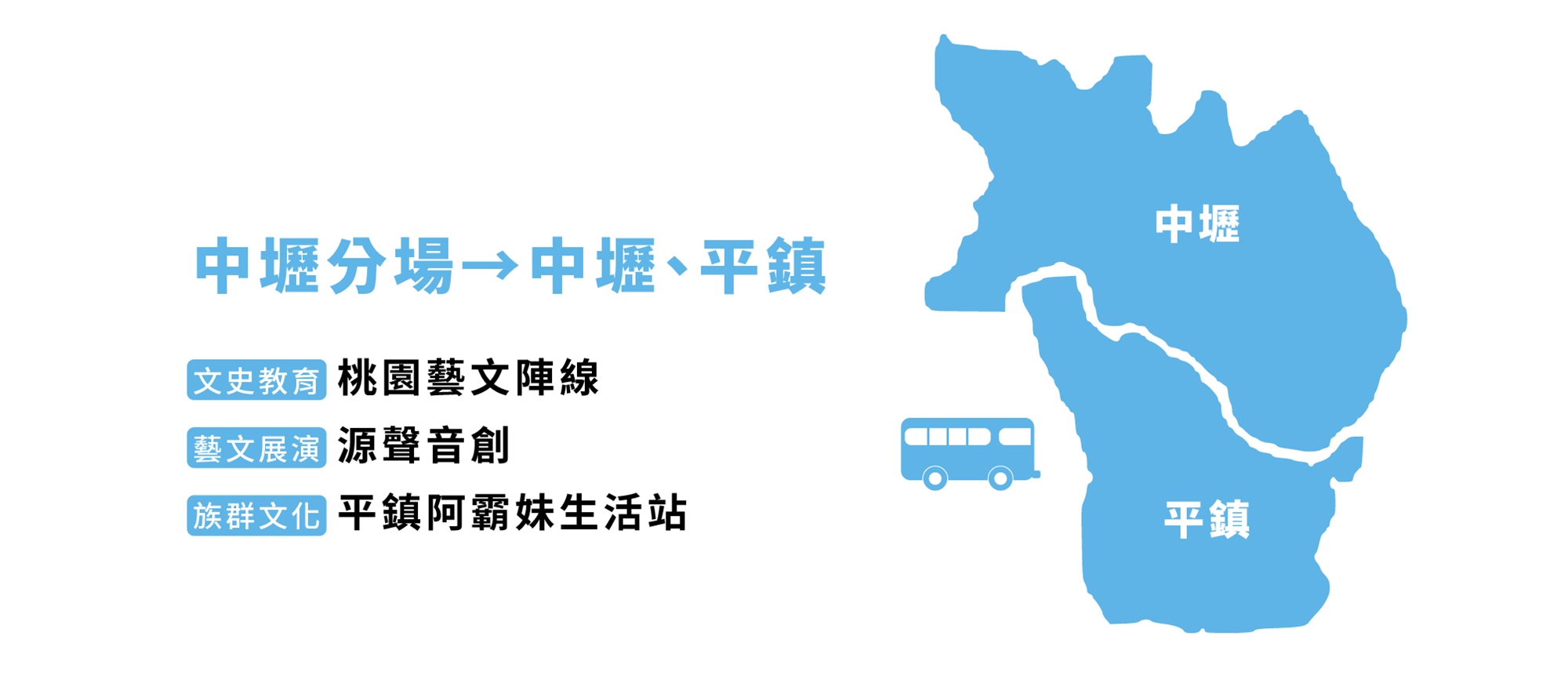 中壢、平鎮生活圈是一個有豐富多元文化的地區,中壢的見學團,帶你看眷村的空間活化與經營、體驗雲滇及東南亞文化美食,更順著水圳埤塘悠遊,認識客家文化。