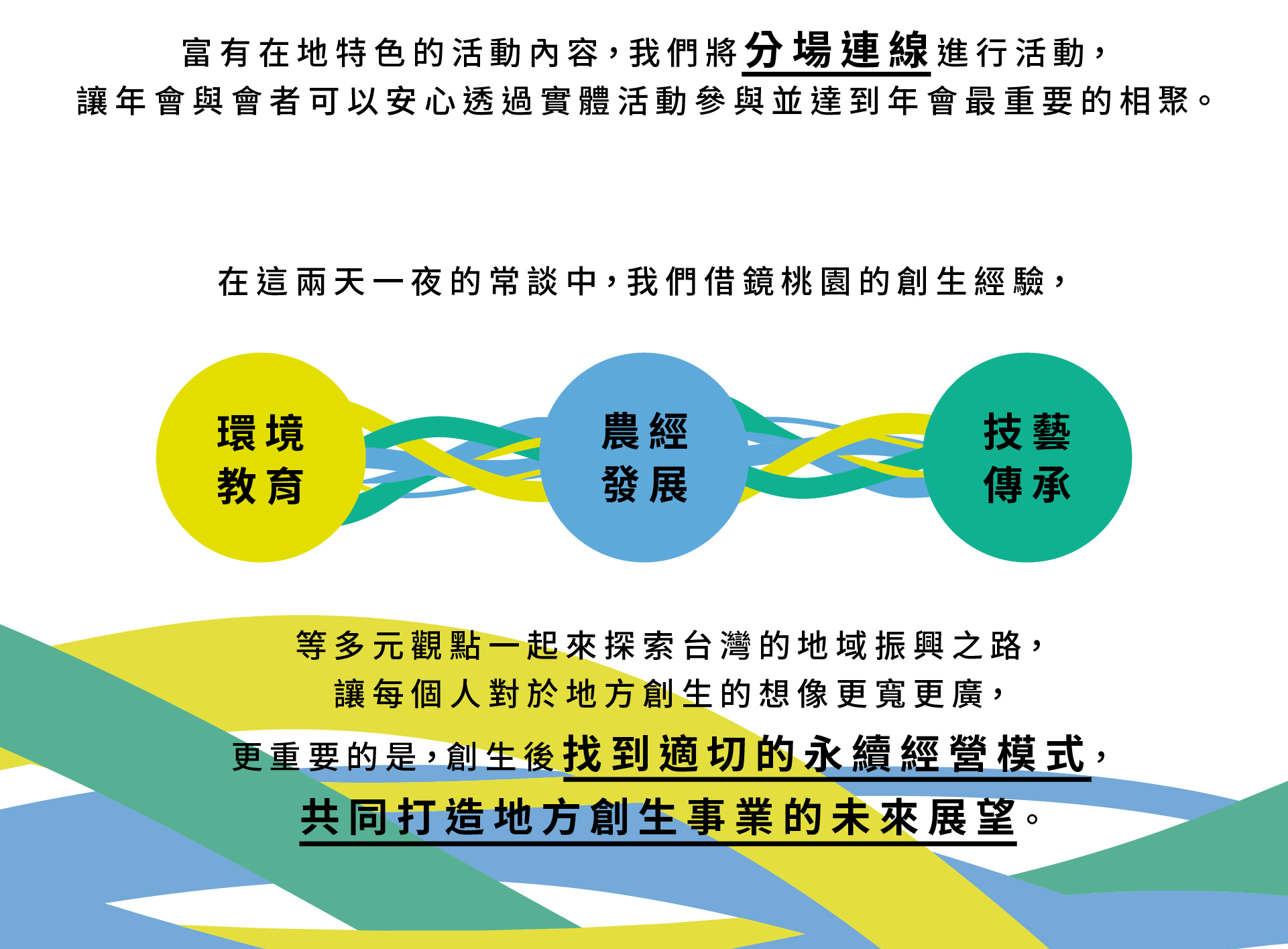 協辦單位┃社團法人台灣城鄉永續關懷協會、台灣地方創生基金會、台灣公益團體自律聯盟、中原大學、慢島生活、C House 溪房子手作、小社區大事件、洄游創生