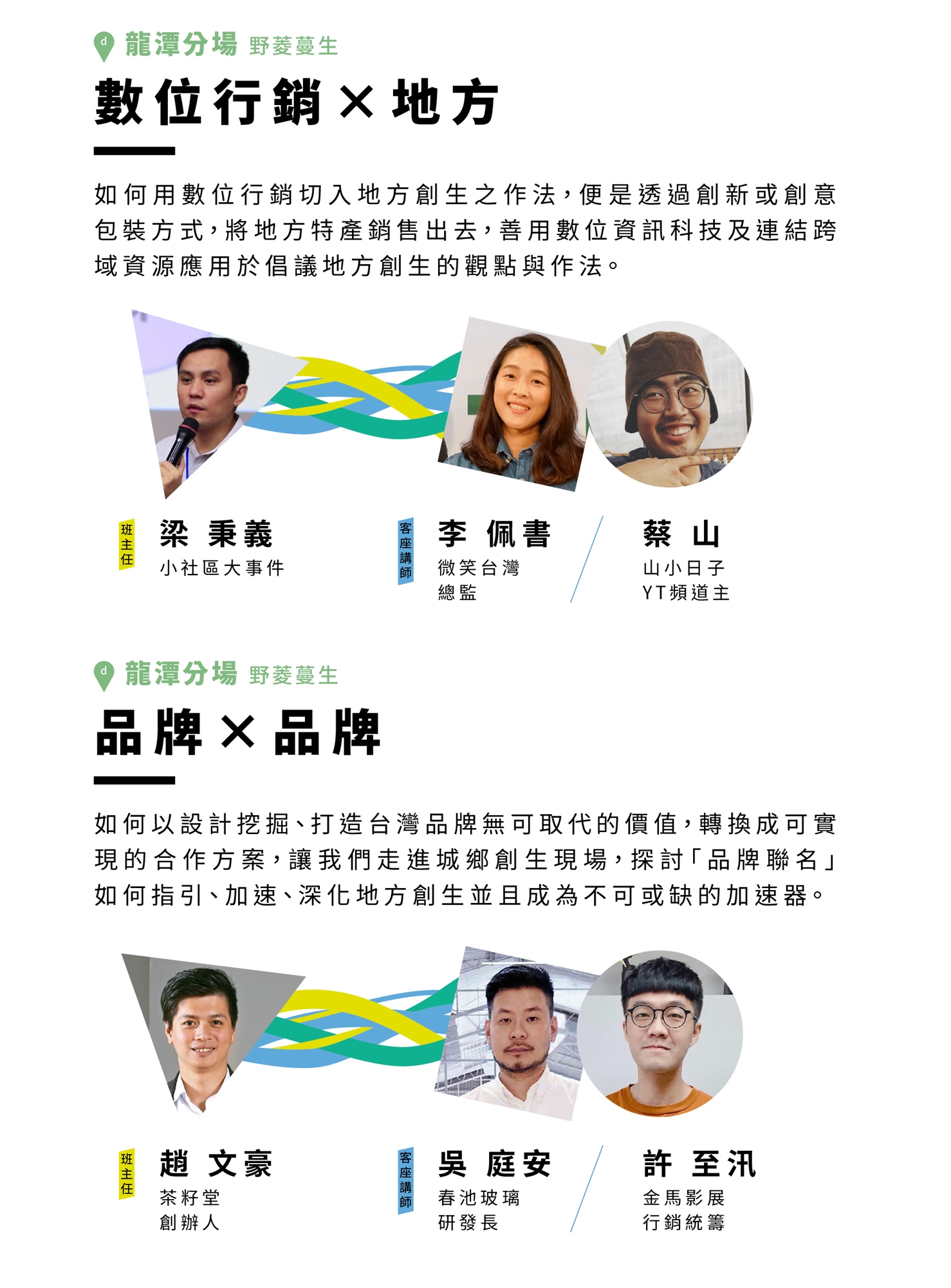 一群龍潭青年回到家鄉,以當代生活、地方挖掘、在地培力、大眾溝通為核心主軸,期許為龍潭找到地方創生精神的延續與推廣。