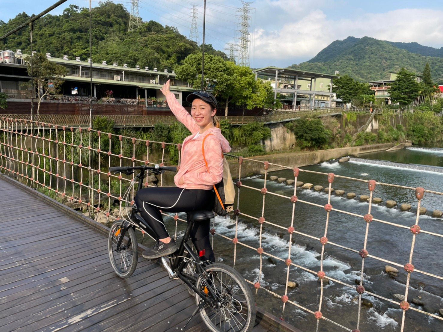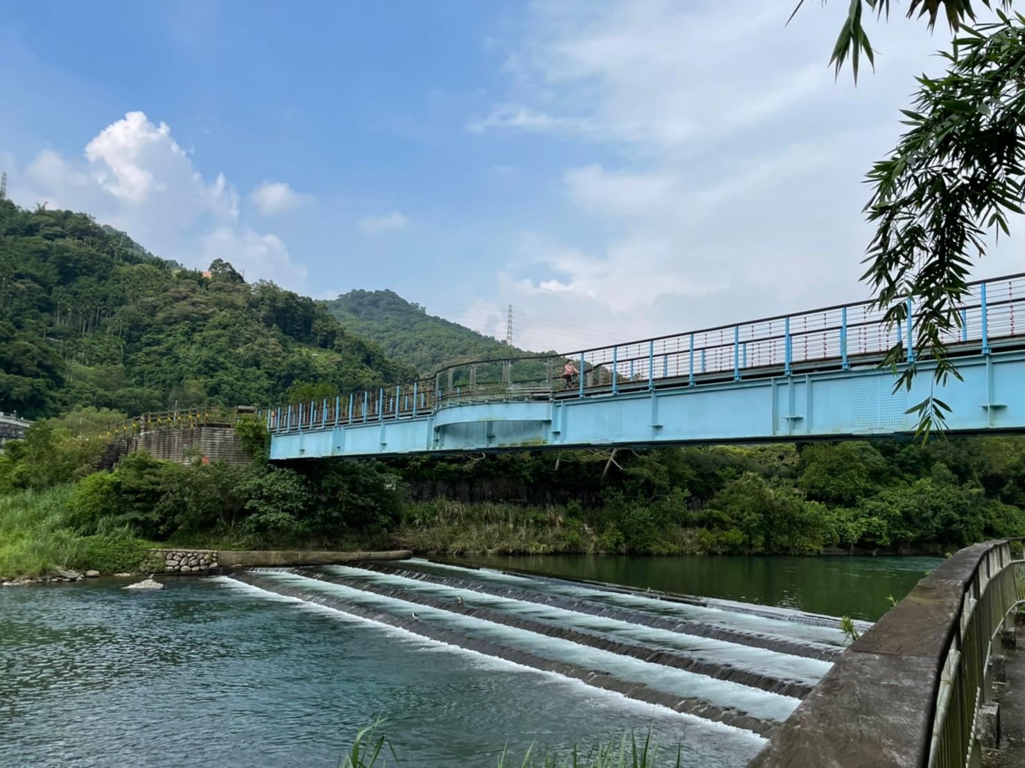 吊橋串接一端是熱鬧的坪林商圈、一端是觀魚步道