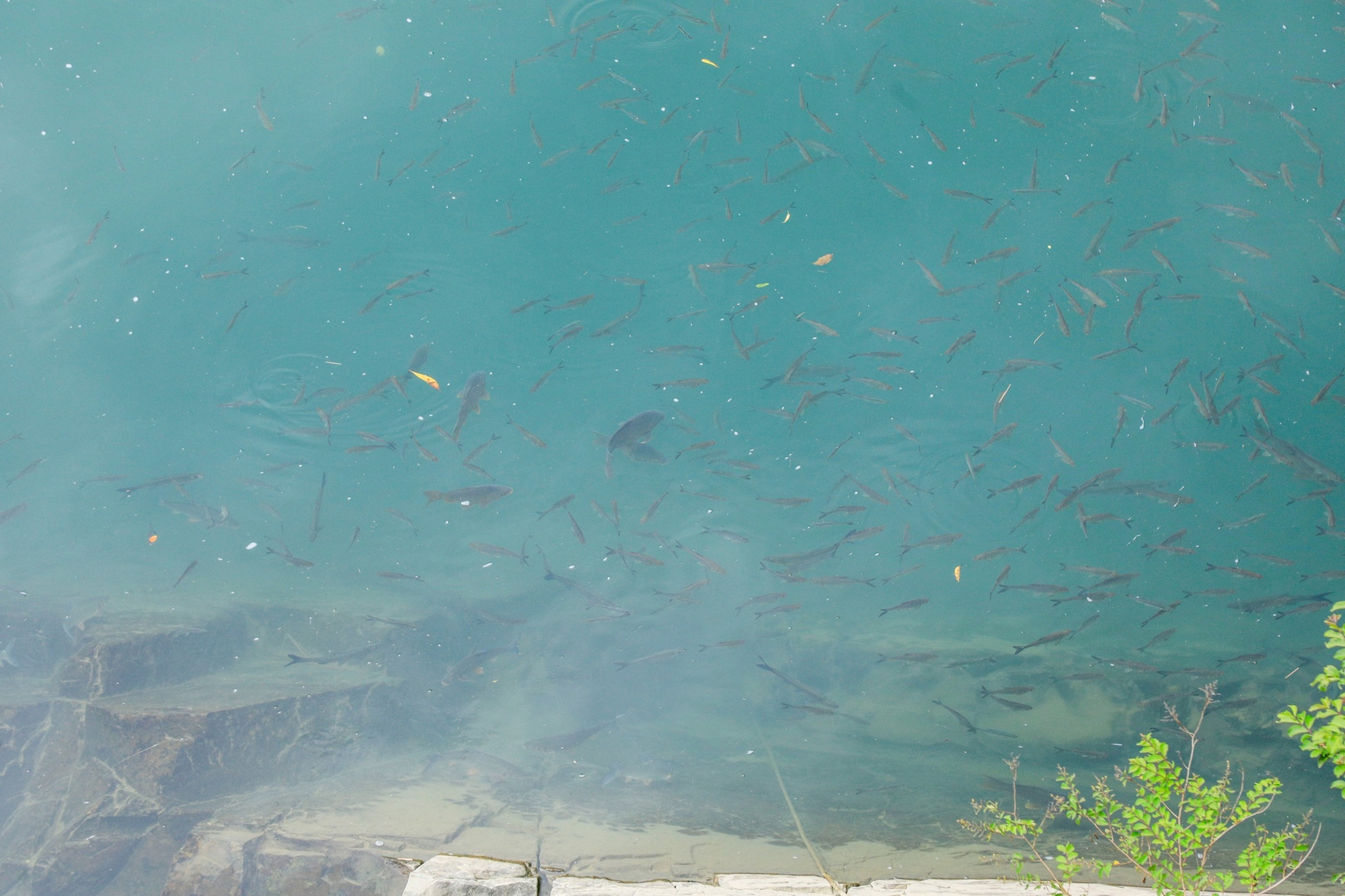 從上而下觀察,這才發現吊橋下方則是魚群閃閃發亮,原來是水中螢火蟲在悠遊!