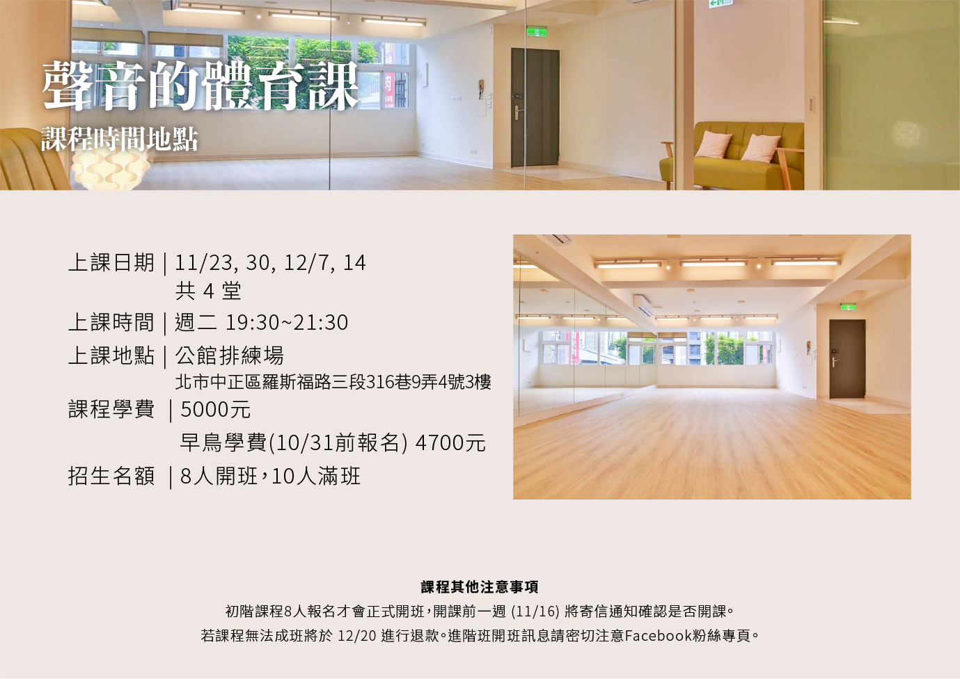 聲音的體育課|音量、氣息與音色|聲音訓練初階班
