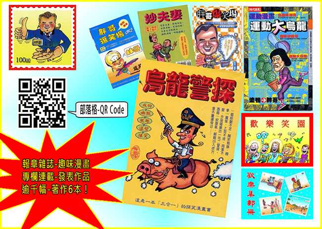 報章雜誌-趣味漫畫專欄連載(以上均逾20年-發表作品千幅-著作6本)