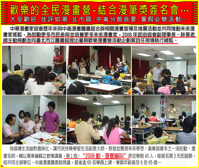中華漫畫家協會現任秘書長及臺北市立圖書館中崙分館漫畫家創意讀書會-會長