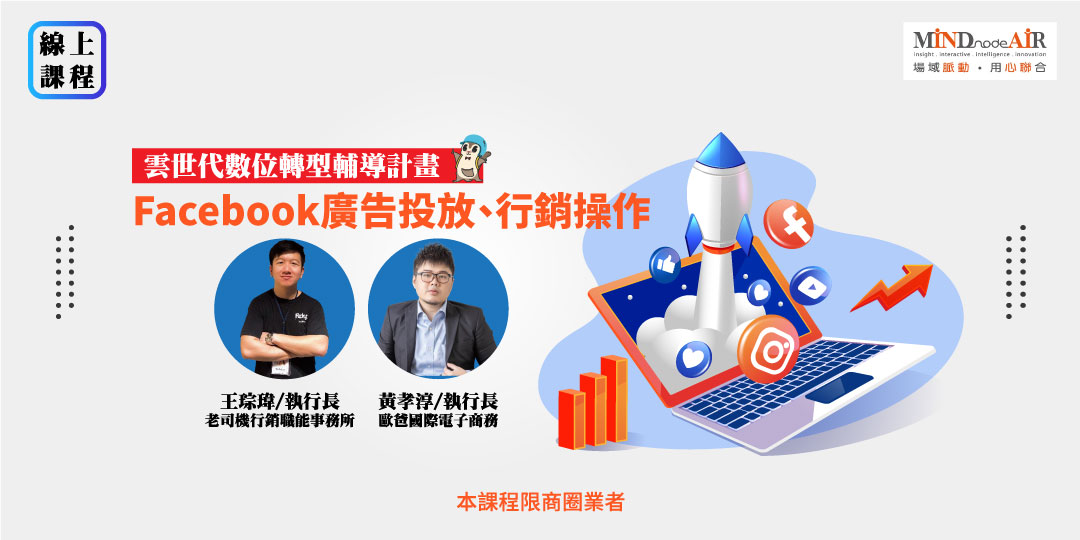 【線上】雲世代數位轉型輔導計畫:Facebook廣告投放、行銷操作 (MiNDnodeAir 脈動心聯)