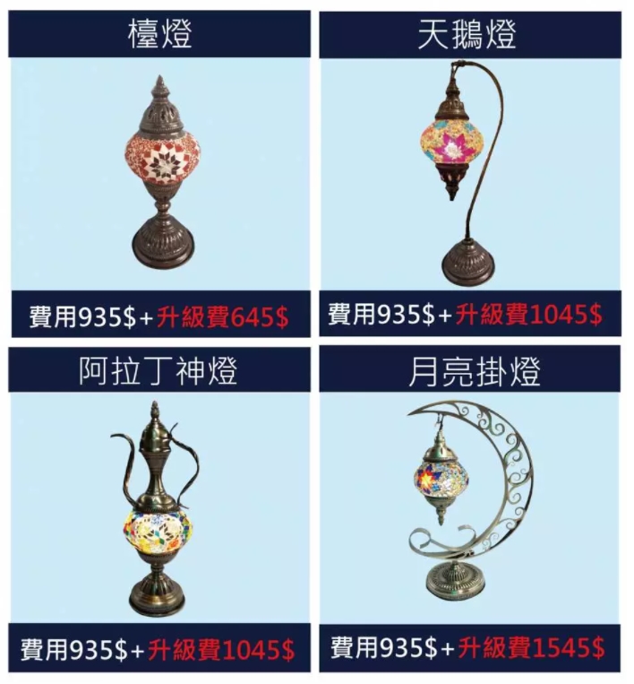 ▲ 其他款式: 檯燈、天鵝燈、阿拉丁神燈、月亮掛燈