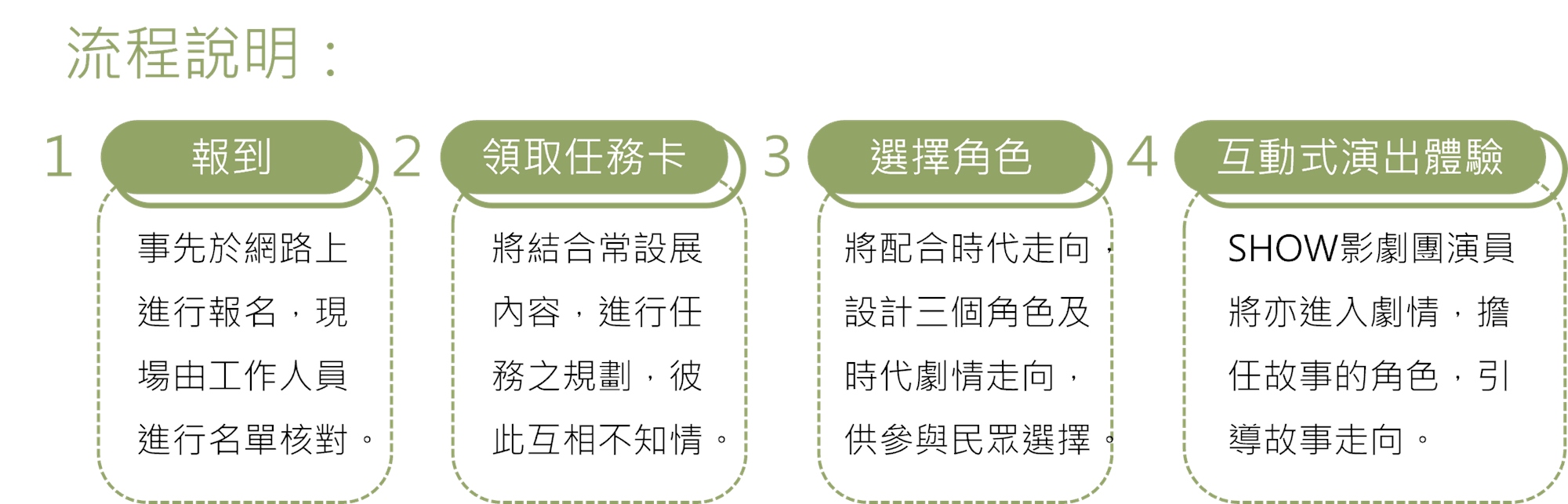 🎬 為使演出內容順利,參與觀眾將分為三組,依序體驗不同時空的故事。