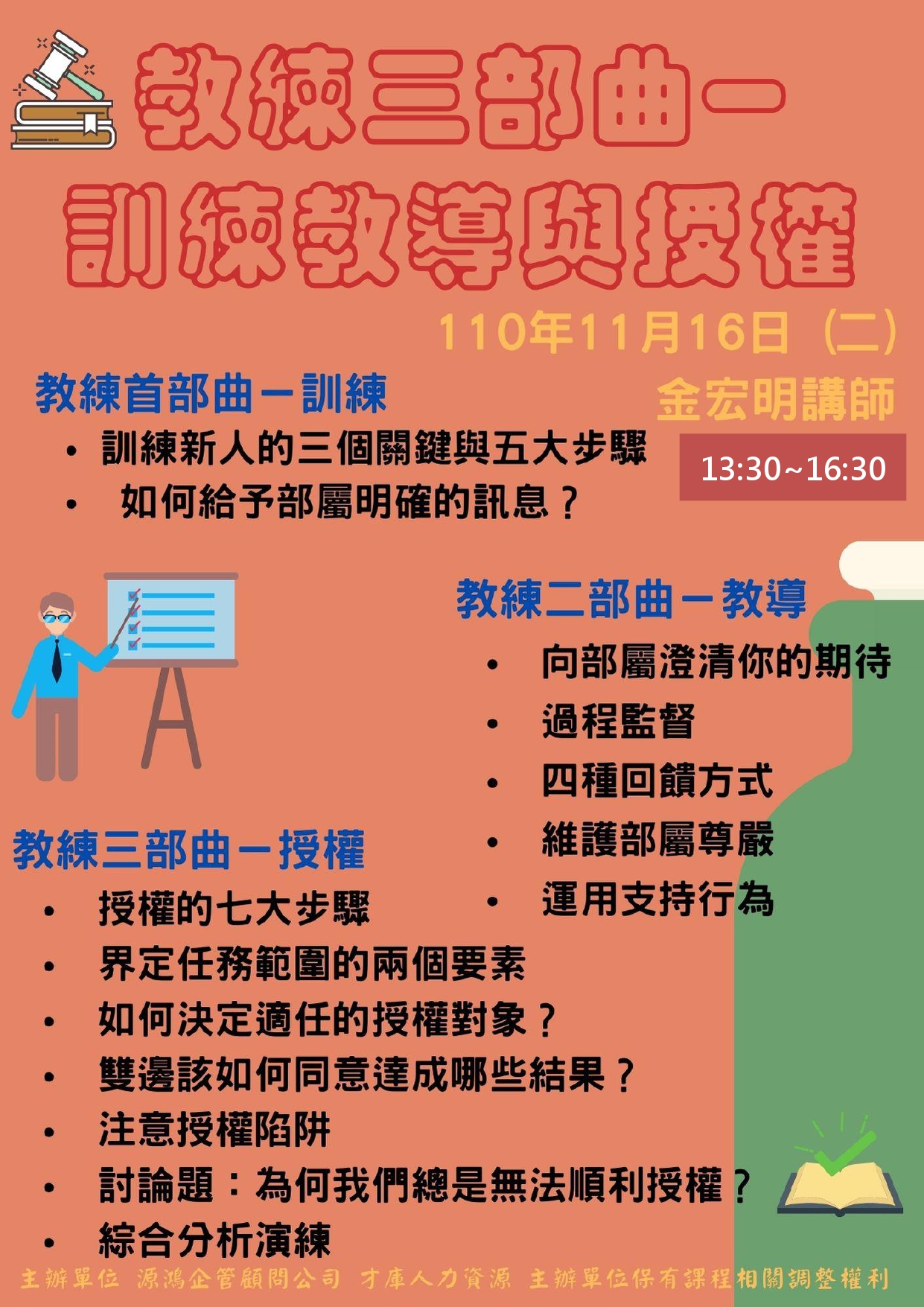 【上課時間】:110/11/16(二) AM13:30-PM16:30 (共計:3小時)
