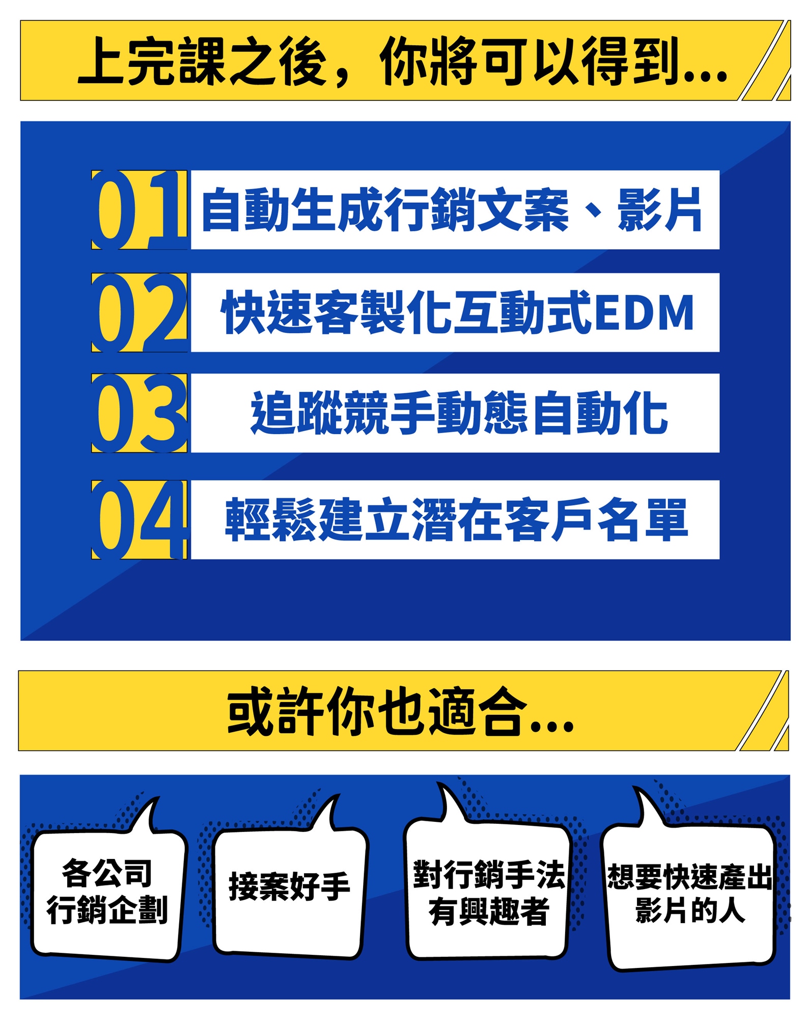 創業台槓的新課程系列品牌,特邀請實務經驗豐富的講師來南部分享開課,進行顧問式的互動教學,期待逐步建構完整的商戰課程體系,為南部產業培養全方位的新世代人才庫。